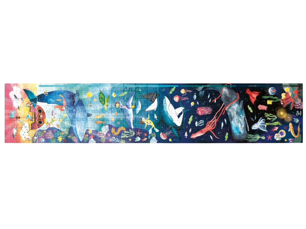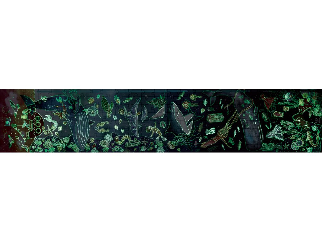 Vklouzněte pod vlny oceánu a navštivte své oblíbené mořské tvory s tímto nádherným podlahovým puzzle. S 200 kusy, které svítí, když jsou světla zhasnutá! Obsahuje 10 karet se zábavnými fakty o mořských tvorech! Balení: 18x6x48cm. Věk: 6+