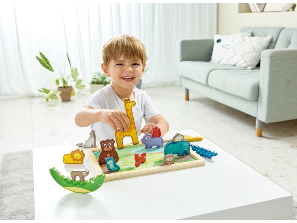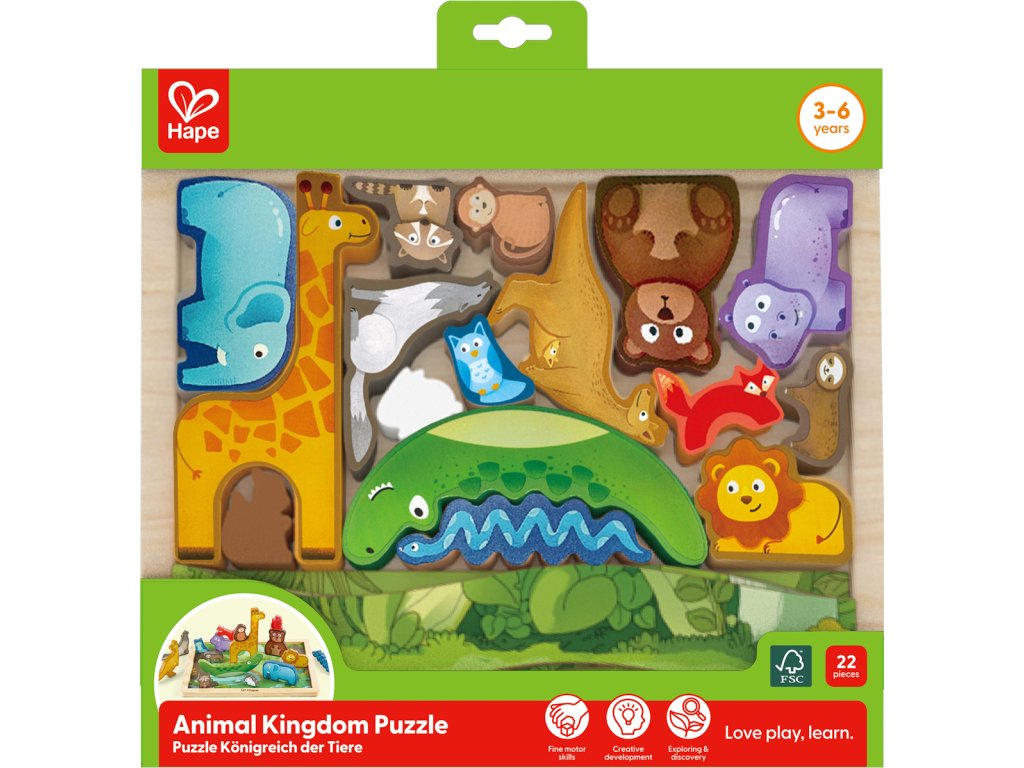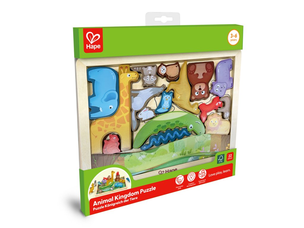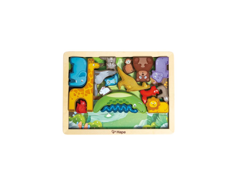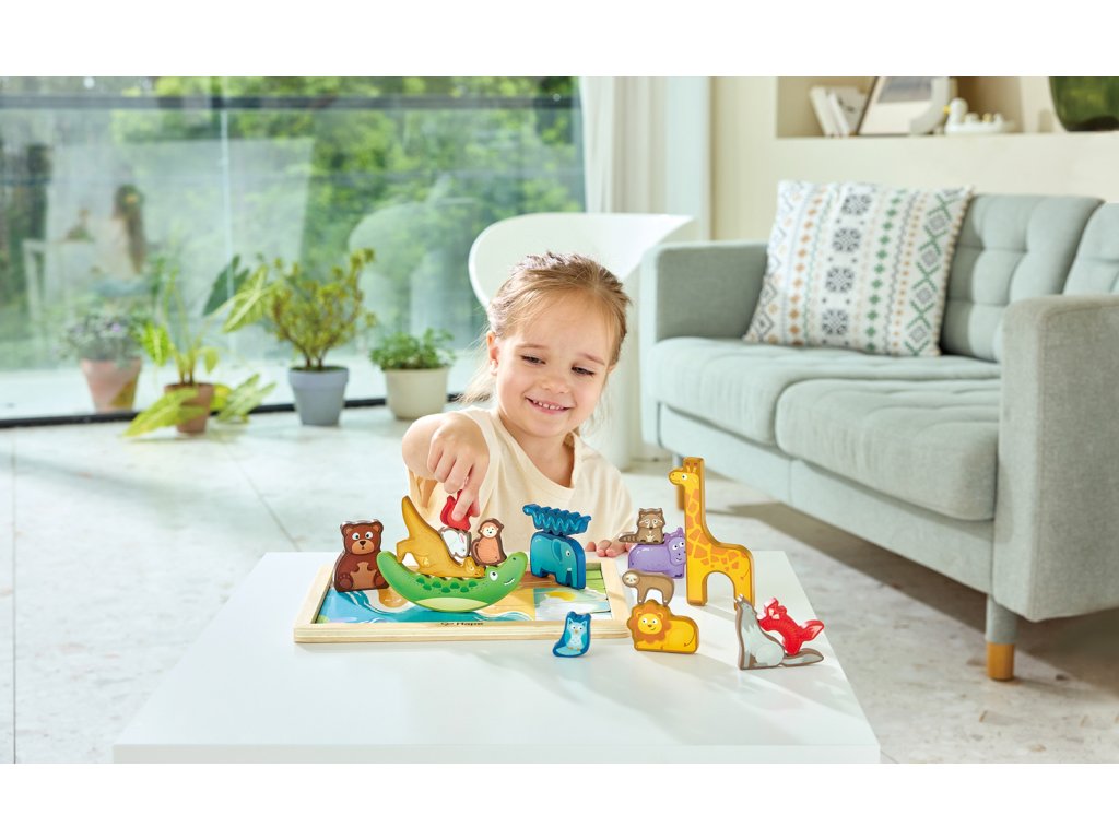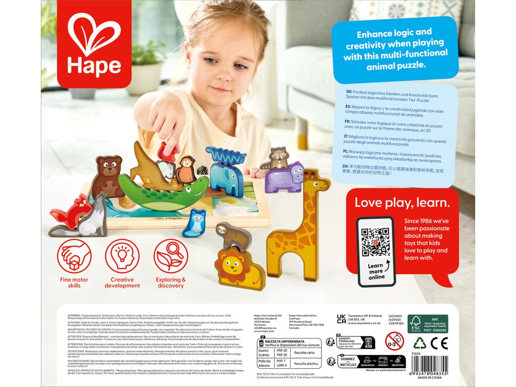 Objevte multifunkční zvířecí puzzle od Hape. Balení obsahuje 16 zvířátek, 1 základní desku a 5 karet s různou tématikou. Dílky se zvířátky jsou navrženy s tluščí konstrukcí, což umožňuje lepší manipulaci i pro malé děti. Zvířátka lze skládat na základní desku i mimo ní. Zapojení do logických a skládacích her pomáhá zlepšit jemnou motoriku dětí a koordinaci ruka-oko a také podporuje trpělivost během jejich samostatné hry. Rozměr balení: 29,5x2x28 cm. Věk 3+