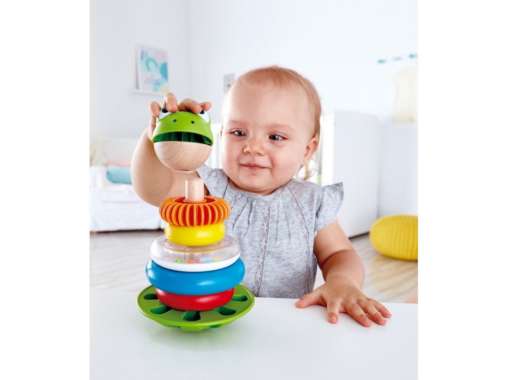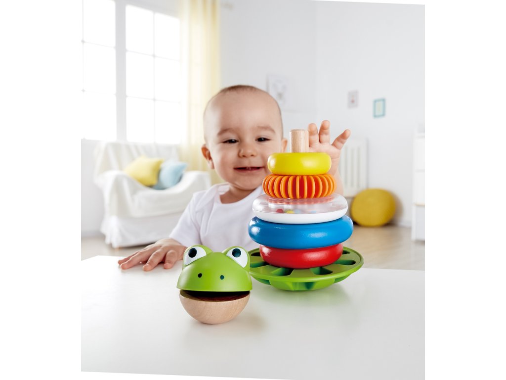 S panem Žabákem se děti naučí nejen navlékat kroužky od největšího po nejmenší nebo naopak, ale i počítat a poznávat barvy. Rozhoupejte pana Žabáka po nasazení různých kroužků a poslouchejte, jaké vydává zvuky. Hračka podporuje motorický rozvoj a jemnou motoriku. Vyrobeno z kvalitního a odolného materiálu. Počet dílků: 7. Rozměr: 12 x 18,6 x 12 cm. Věk: 12m+. Video: https://www.youtube.com/watch?v=3OHtWApcBuA&list=PLlpJxdj0ffav9wRtxpkytZmlQ994rBWUY&index=3