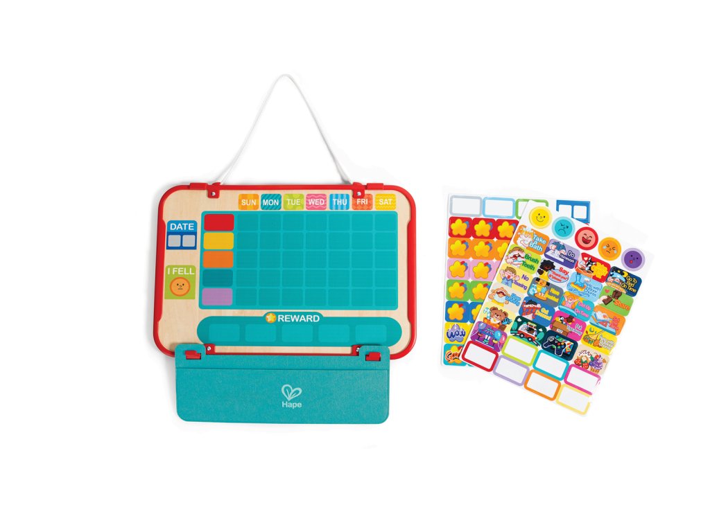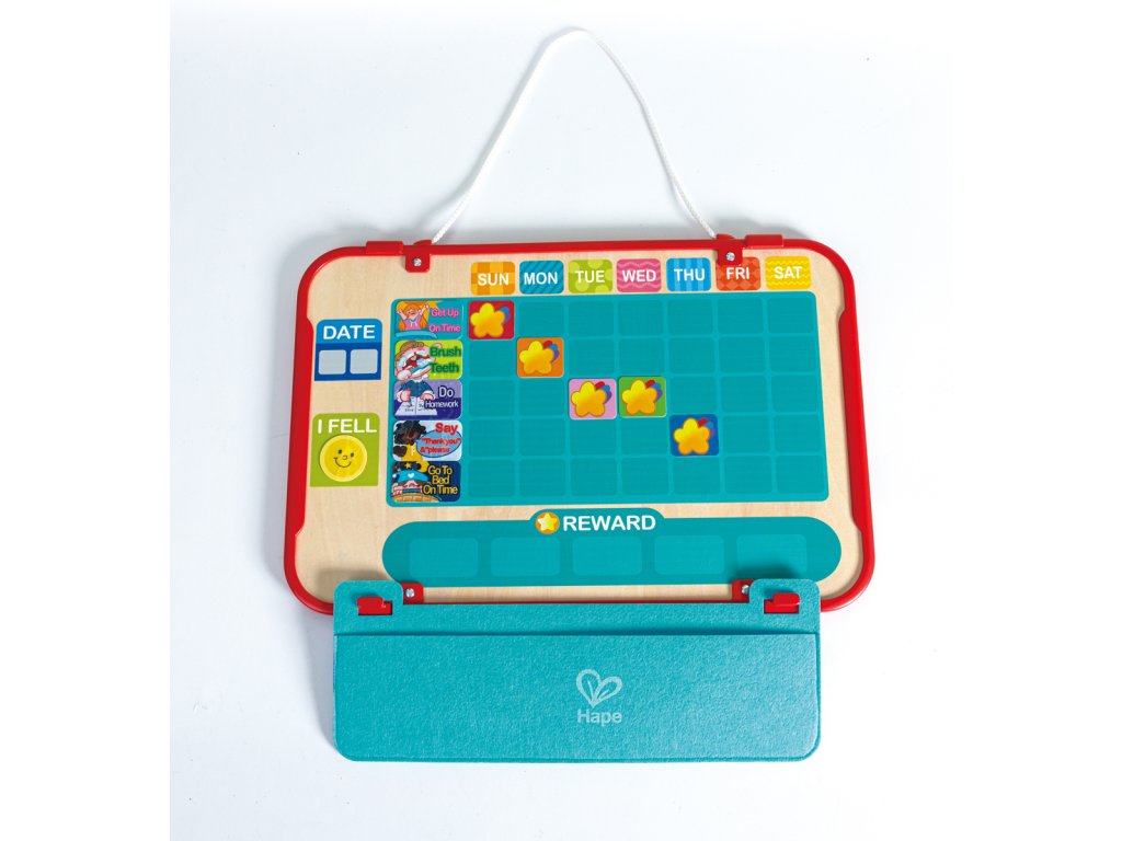 Tabulka odměn s oboustranným designem od Hape. Vhodné pro vytváření návyků a označování data. Přizpůsobitelné pomocí barevných nálepek. Tabulku lze zavěsit. Rozměr balení: 45x2x30,5 cm. Věk 3+