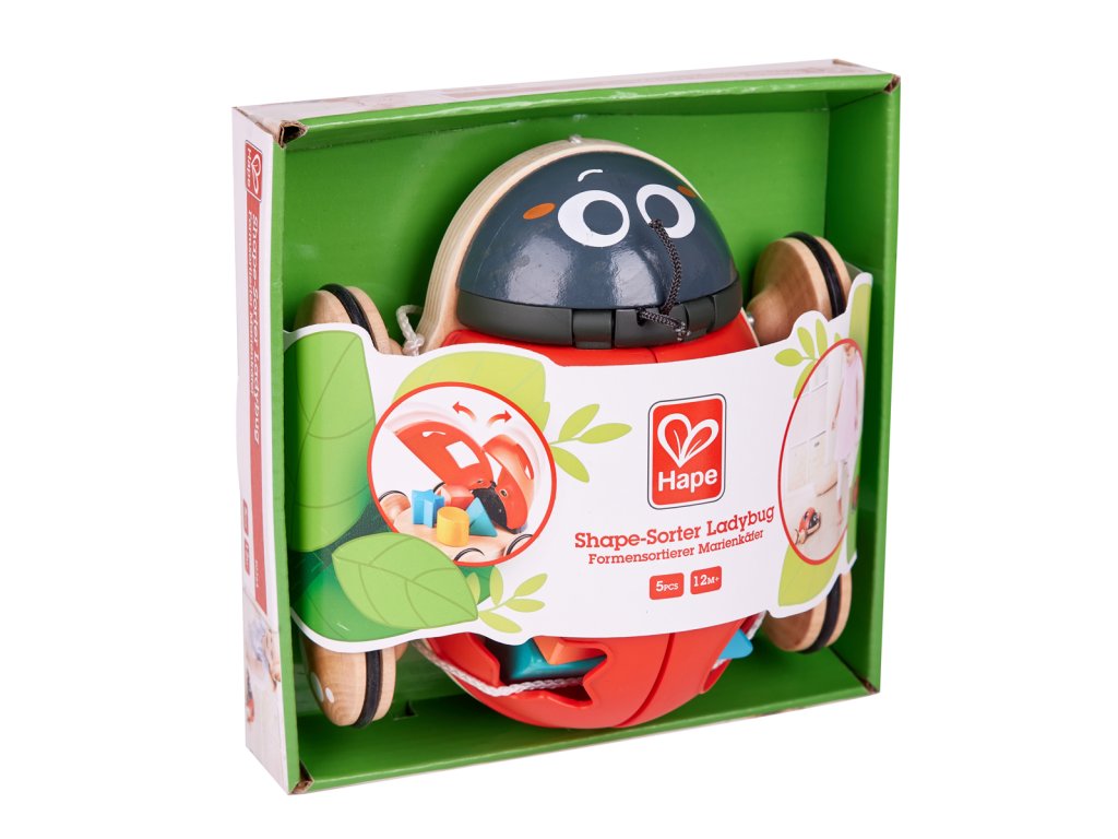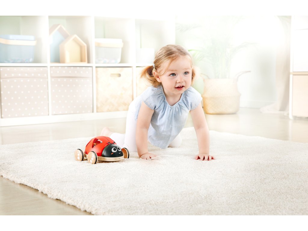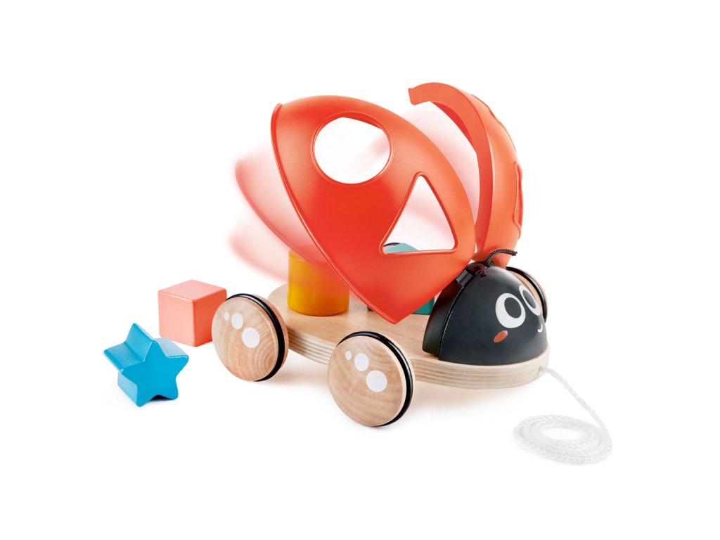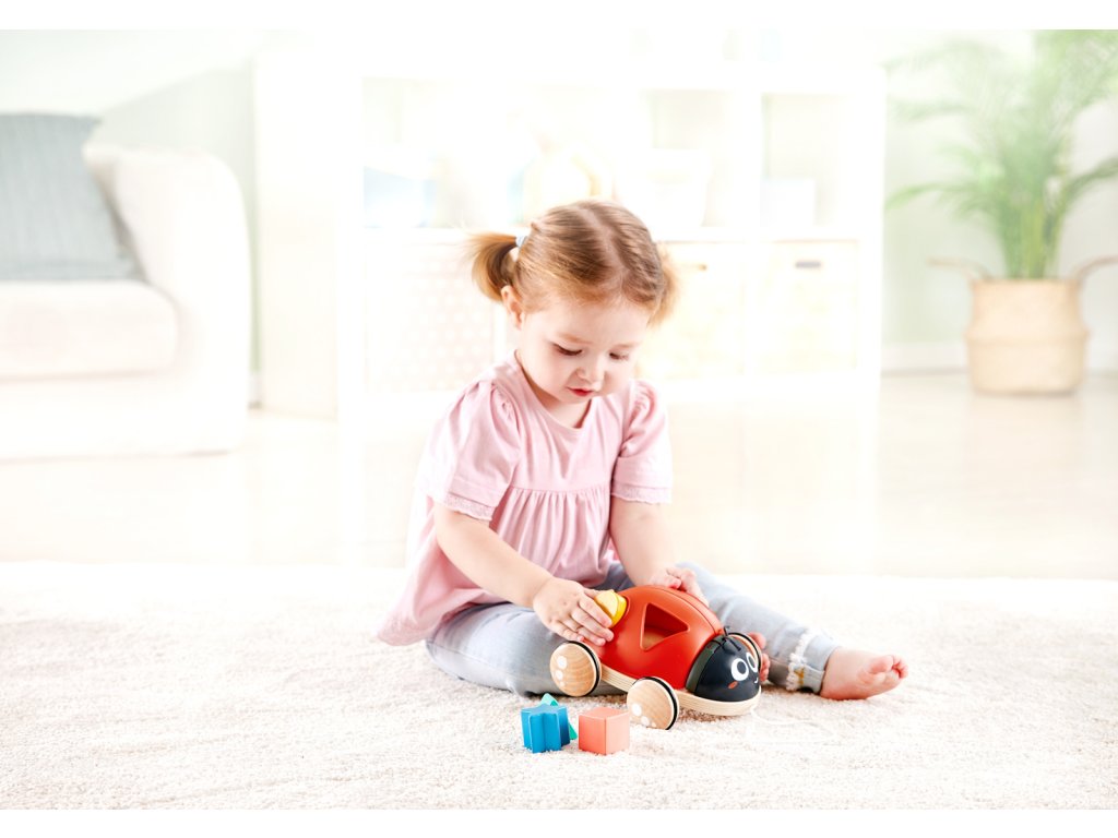 Tato rozkošná beruška prostě miluje procházky a hraní her! Dodává se se čtyřmi různě tvarovanými bloky pro umístění do tvarovaných otvorů v křídlech. Pečlivě navržená pogumovaná zadní kolečka ochrání vaše podlahy, zatímco vaše děťátko převaluje podlahu po celém domě. Skvělé pro podporu rozpoznávání tvarů a barev a také pro rozvoj jemné motoriky. Balení: 18x7,8x20cm. Věk: 12m+