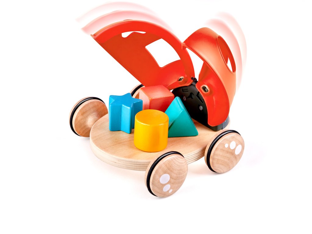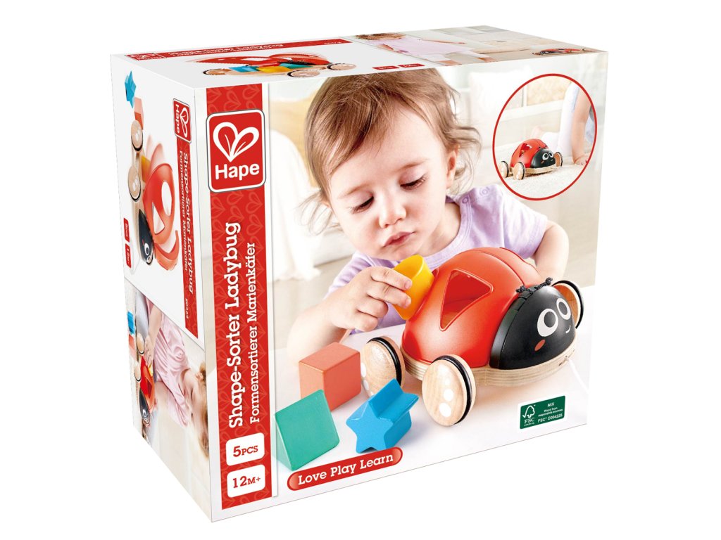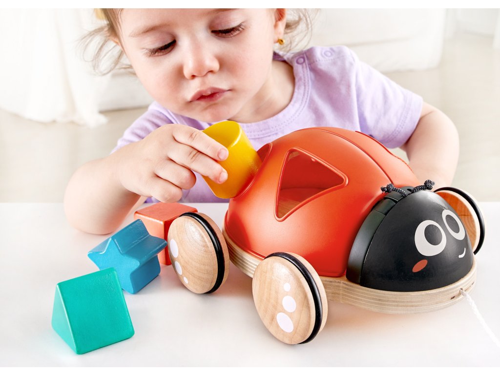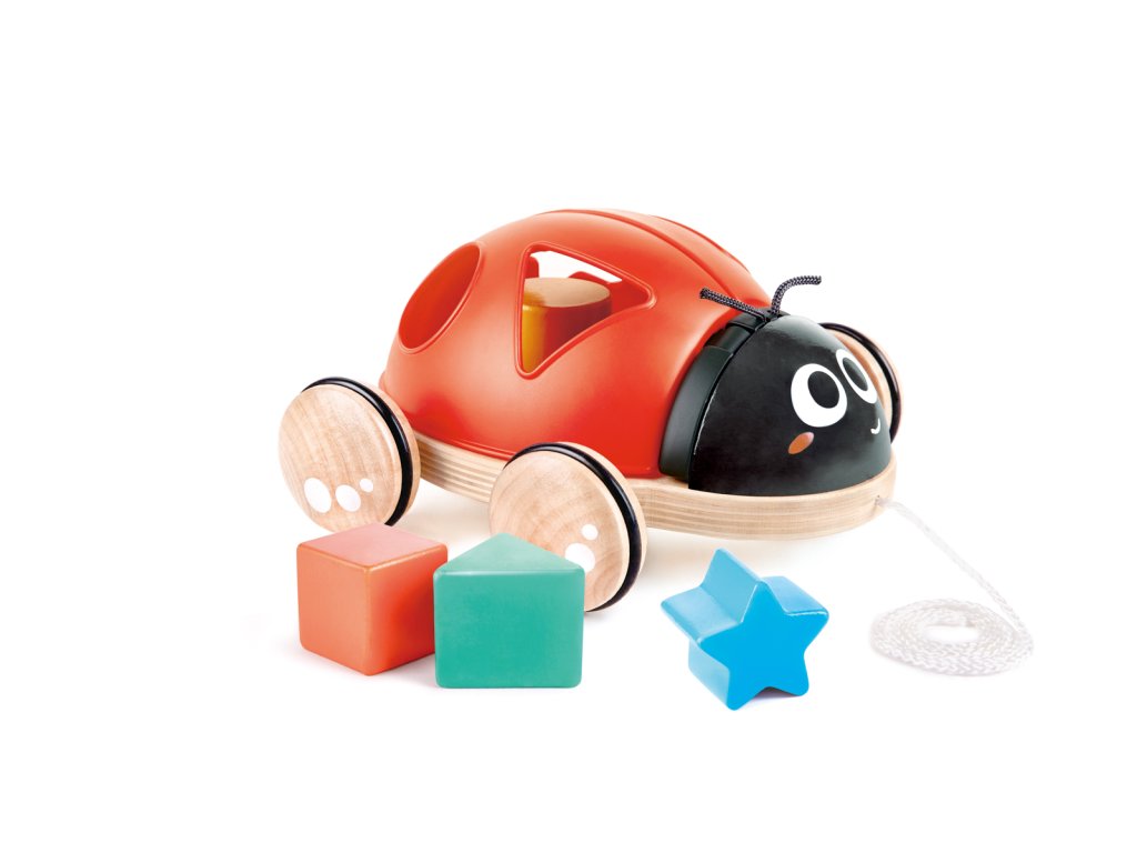 Tato rozkošná beruška prostě miluje procházky a hraní her! Dodává se se čtyřmi různě tvarovanými bloky pro umístění do tvarovaných otvorů v křídlech. Pečlivě navržená pogumovaná zadní kolečka ochrání vaše podlahy, zatímco vaše děťátko převaluje podlahu po celém domě. Skvělé pro podporu rozpoznávání tvarů a barev a také pro rozvoj jemné motoriky. Balení: 18x7,8x20cm. Věk: 12m+