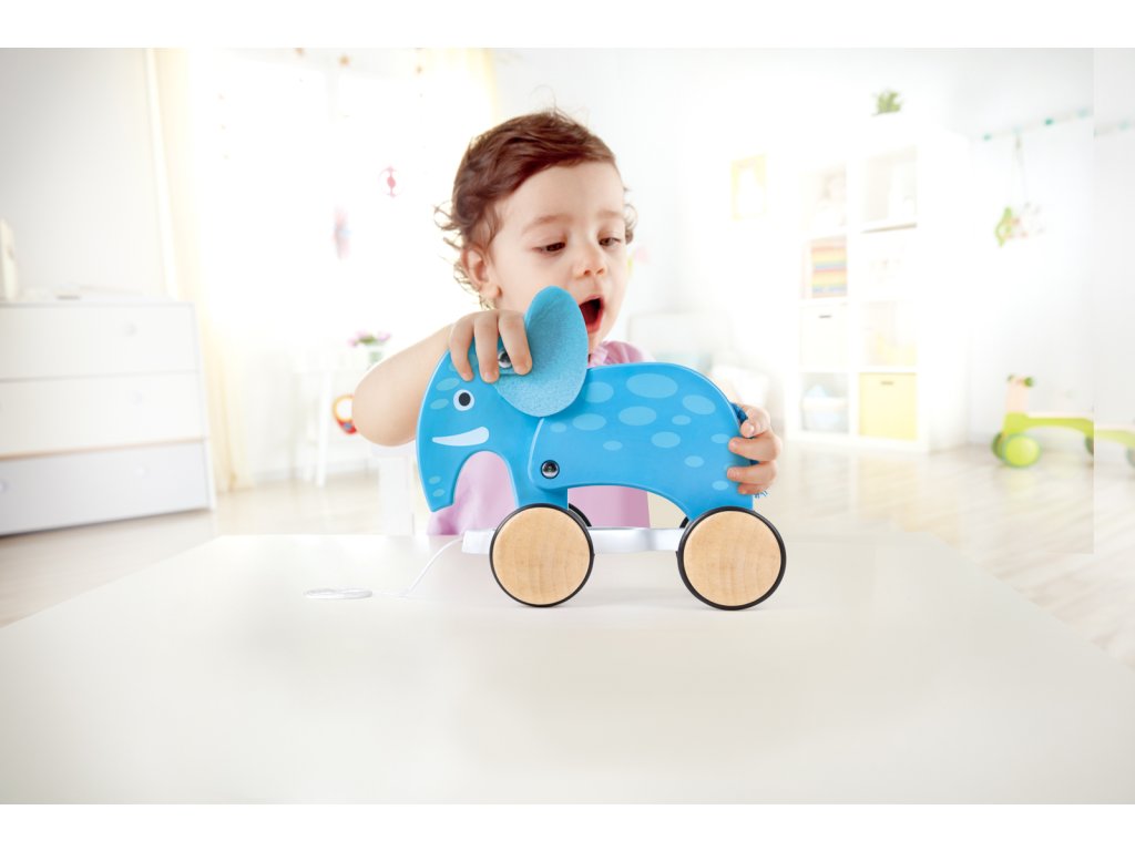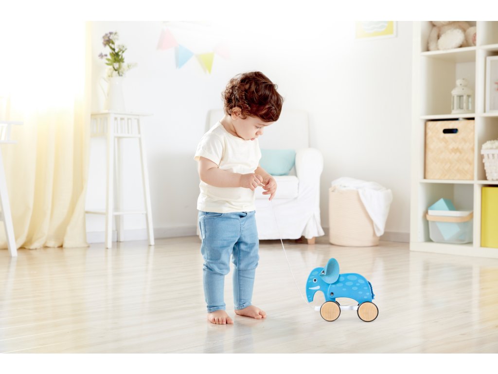 Tahací slon je zábavný kamarád s dlouhým nosem, se kterým si můžete hrát po celém domě. Díky provázku nebo pohodlné zadní rukojeti je vaše dítě v bezpečí. Zlepšete vývojové dovednosti dítěte při objevování zvířecí říše. Vyrobeno z masivního javoru z lesů spravovaných FSC. Grafika je sítotiskem přímo na dřevo. Balení: 11x20x23,5cm. Věk: 12m+