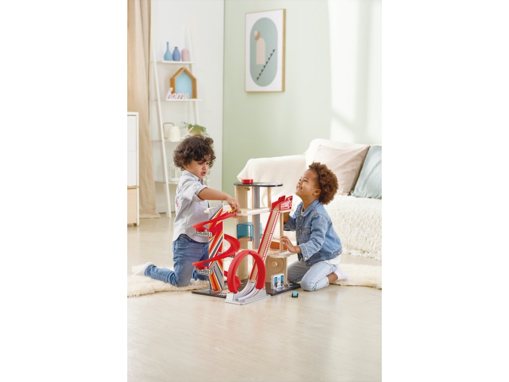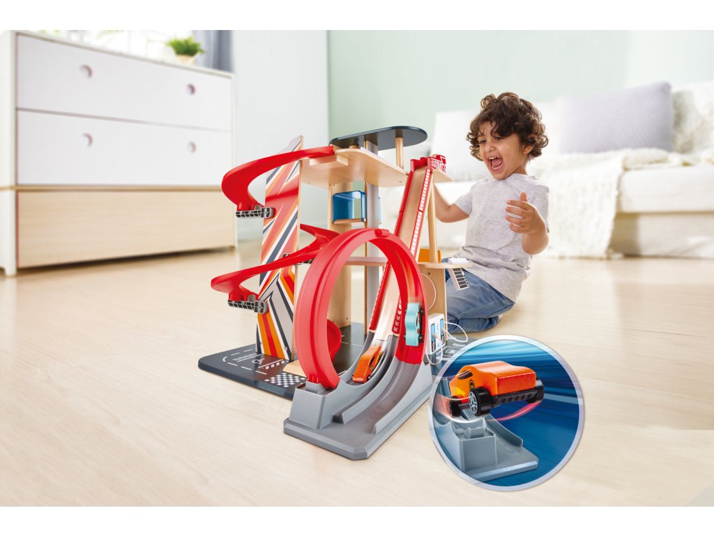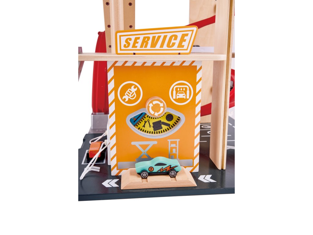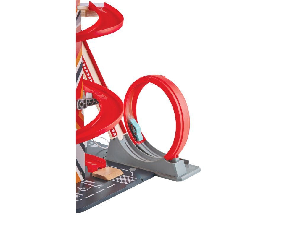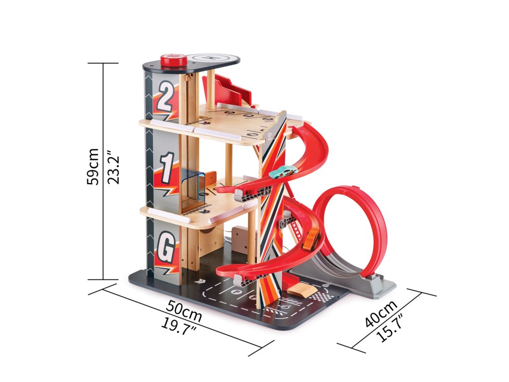 Tato úžasná 3patrová garáž je perfektním místem pro uložení vašich superaut a procvičování kaskadérských kousků! Ručně vinutý skříňový zvedák může dostat vaše auta do různých úrovní. Garáž obsahuje servisní centrum s otočnou deskou, dvěma solárně poháněnými nabíjecími body, točitou spirálovou rampou a dokonce i masivní smyčkou! Vhodné pro autíčka o rozměru: 7x1,8x1,8cm - tedy o většinu modelů HW. Rozměry: 55 x 54x 16,5 cm Věk: 3+