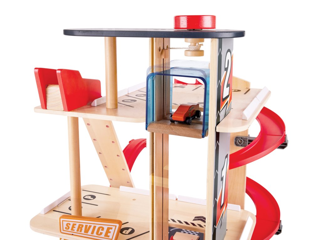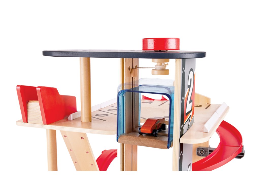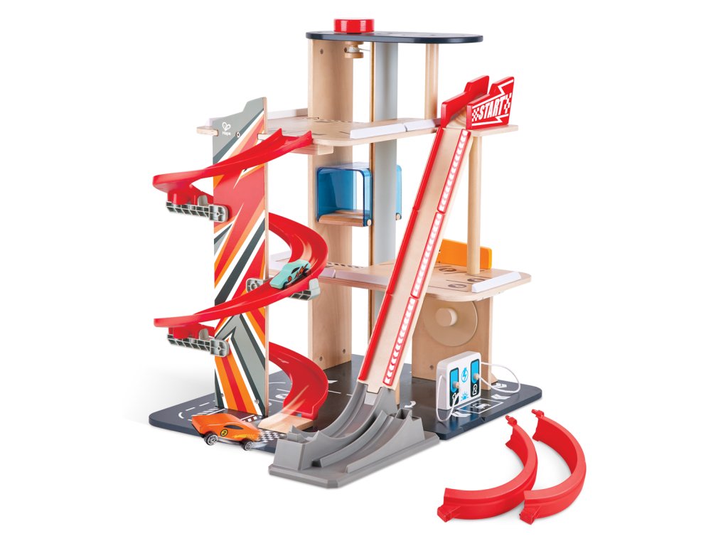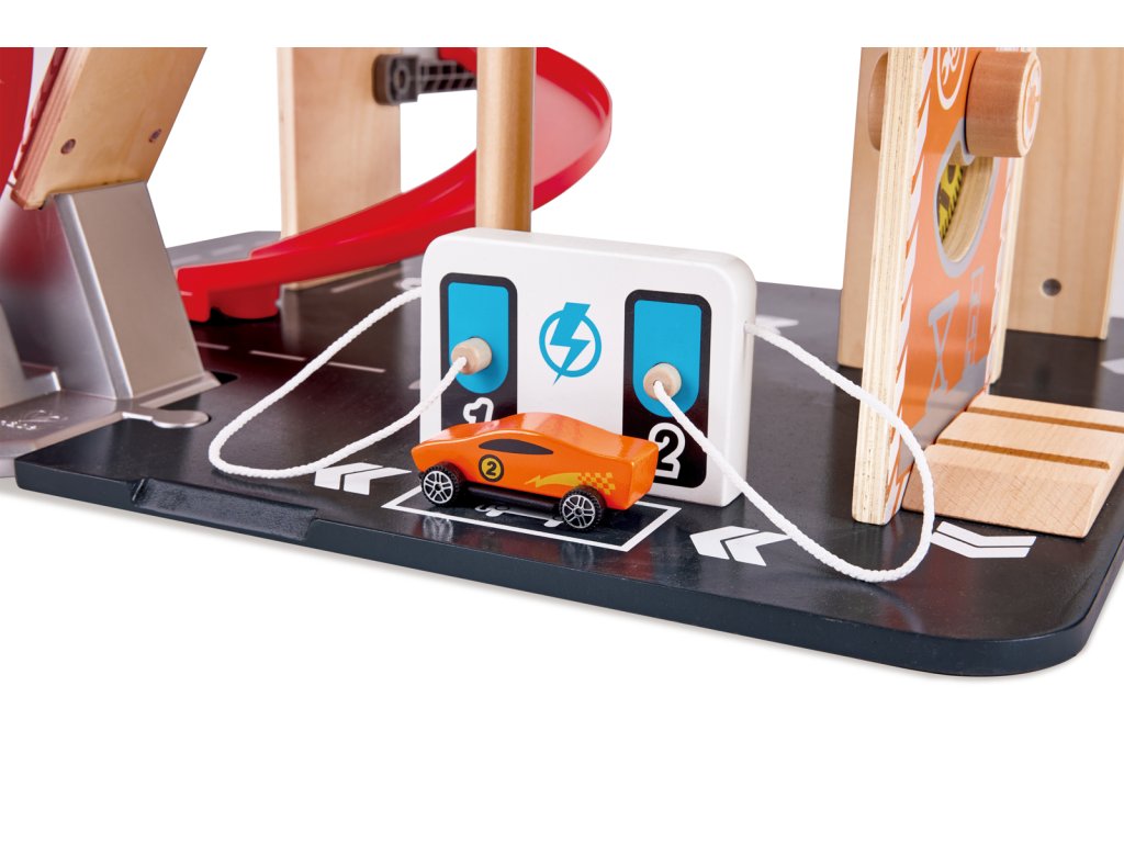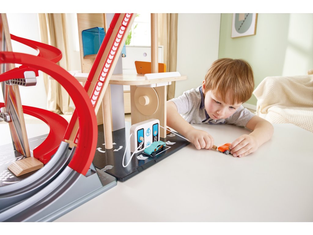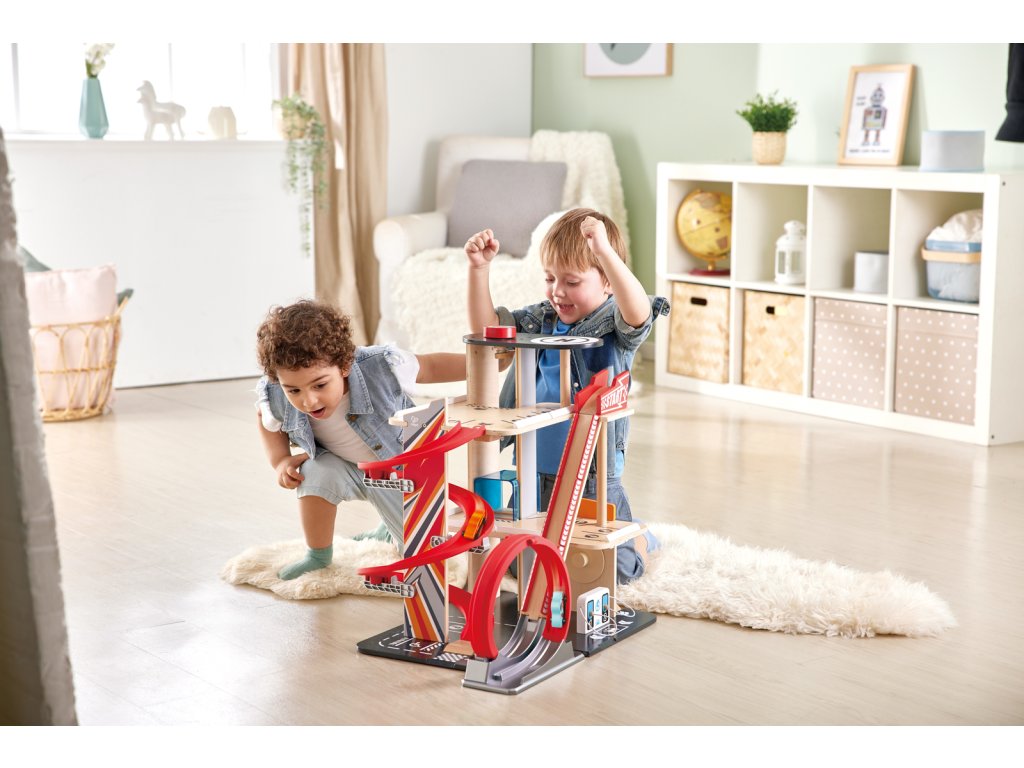 Tato úžasná 3patrová garáž je perfektním místem pro uložení vašich superaut a procvičování kaskadérských kousků! Ručně vinutý skříňový zvedák může dostat vaše auta do různých úrovní. Garáž obsahuje servisní centrum s otočnou deskou, dvěma solárně poháněnými nabíjecími body, točitou spirálovou rampou a dokonce i masivní smyčkou! Vhodné pro autíčka o rozměru: 7x1,8x1,8cm - tedy o většinu modelů HW. Rozměry: 55 x 54x 16,5 cm Věk: 3+