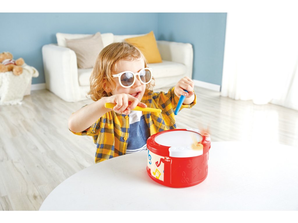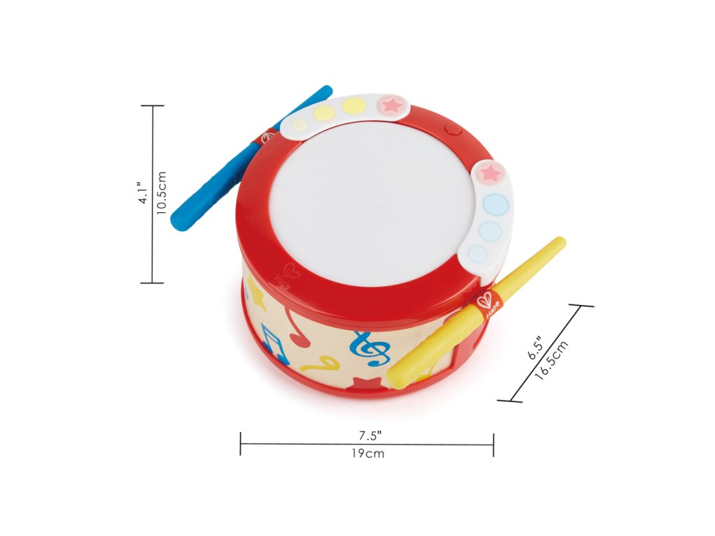Naučte se hrát na buben. Pomozte svému dítěti objevit jeho hudební talent. Tento silikonový bubínek učí děti tempu a rytmu prostřednictvím dvou různých hudebních režimů a naváděcích světel. Představte svému dítěti základní hru s tréninkovým módem rytmu a procvičte si jeho načasování v šesti jednoduchých rytmech. Jakmile to zvládnou, mohou přejít do režimu melodií a hrát si se skutečnými skladbami, a to jednoduše přepnutím přepínače na boku bubnu. Tyto dva režimy pomáhají malým dětem rozvíjet logické myšlení, jemnou motoriku, trpělivost a zároveň se i baví. Buben je dodáván se dvěma paličkami a praktickým vestavěným držákem, aby se neztratily. Pomocí nich nebo rukou vydávejte jemné zvuky bubnu. Hrát můžete i na vypnutém bubínku. Bubínek se sám vypne po 5 minutách nečinnosti. Rozměr: 19 x 10,5 x 16,5 cm. Rozměr balení: 18,3 x 24,2 x 18,5 cm. Baterie: 3 x AAA (baterie jsou součástí balení). Věk: 1+. Video: https://www.youtube.com/watch?v=mi2VoFr3_-U