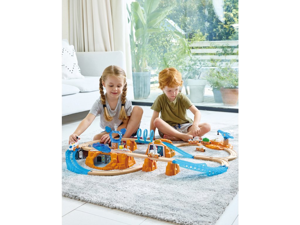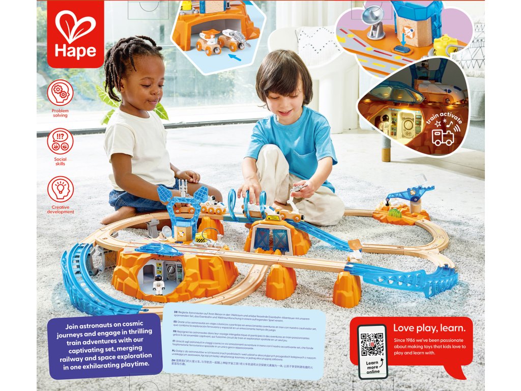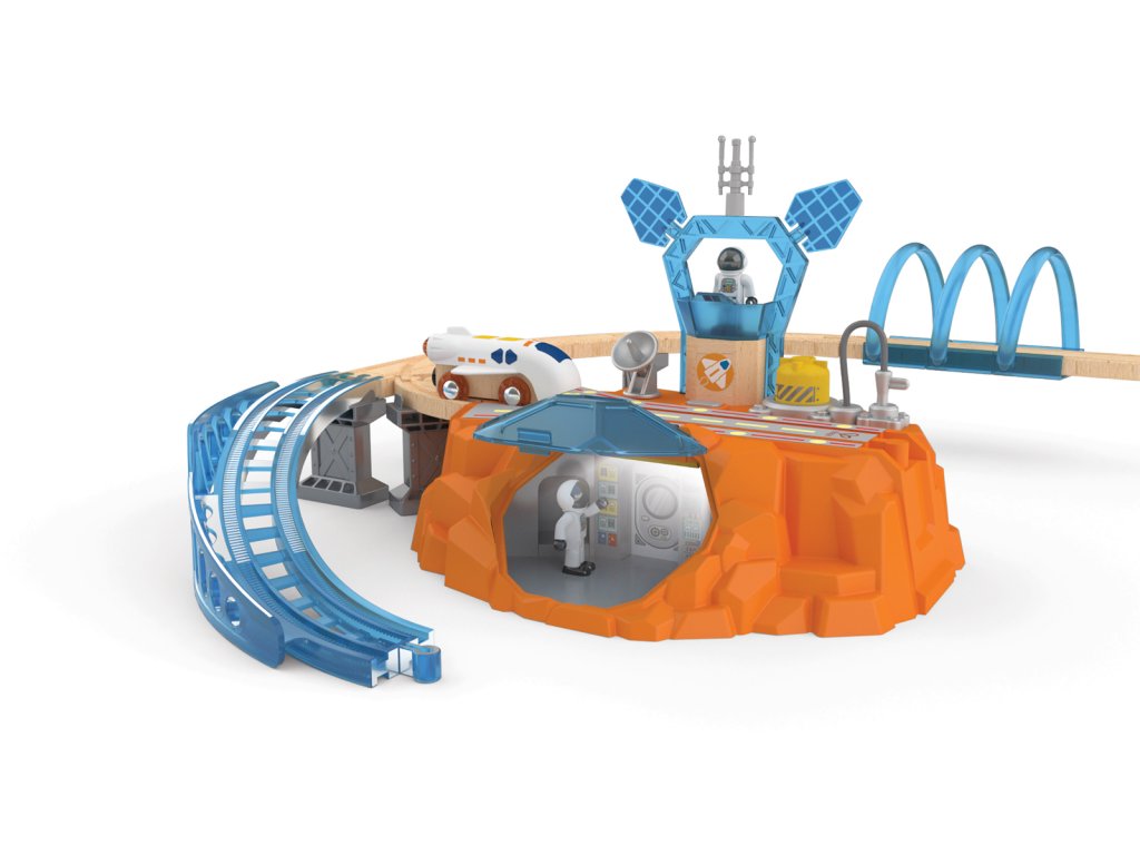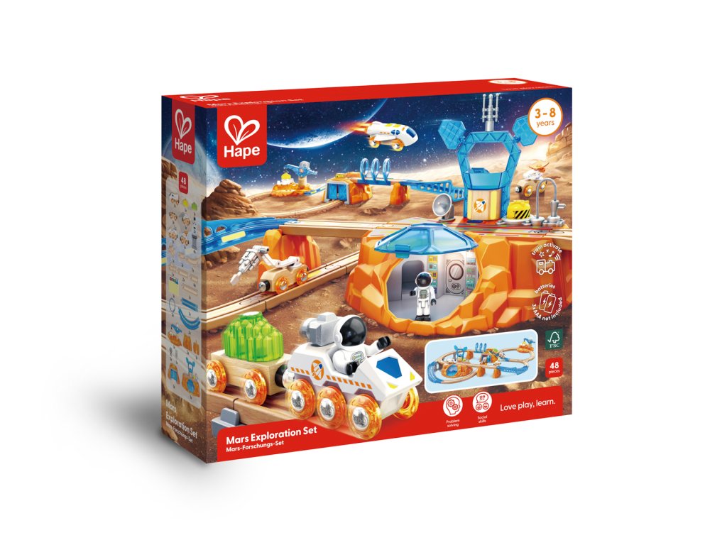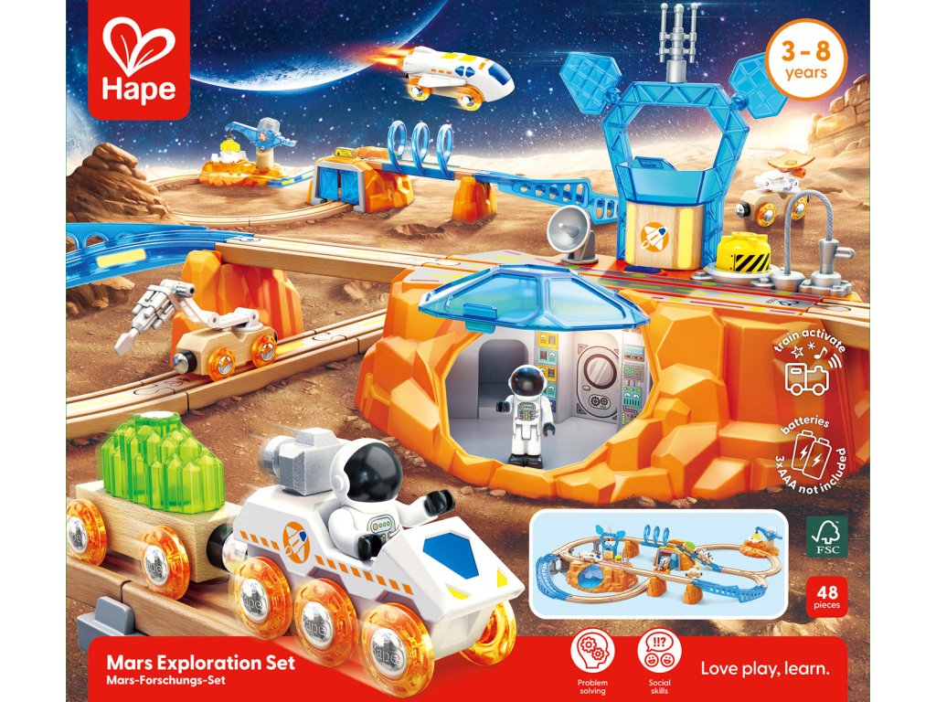 Připojte se k astronautům na vesmírných cestách a zapojte se do vzrušujících vlakových dobrodružství s naší úchvatnou sadou, která spojuje železnici a průzkum vesmíru v jedné vzrušující hře. Objevte několik funkcí na základně Mars, od laboratoře po garáž. Prozkoumejte radar, odnímatelné antény, solární panely a čerpací stanici pro další herní možnosti. Zapojte se do smyslového dobrodružství s touto sadou vesmírných kolejnic. V režimu raketoplánu vydává při průletu zleva doprava nebo zprava doleva zvuky přistání a vzletu. V režimu vlaku si vychutnejte neustálý zvuk motoru stroje pro vzrušující herní zážitek. Umocněte noční dobrodružství pomocí samolepek svítících ve tmě pro stopy a scény, čímž vytvoříte fascinující a živé prostředí hry. Skládání kolejí a manévrování vlaků inspiruje kreativitu a dovednosti při řešení problémů a podporuje jejich znalosti o světě kolem nich. Funguje na 3xAAA baterie. Celkem 48 dílů. Rozměr balení: 48x12x42 cm. Věk 3+