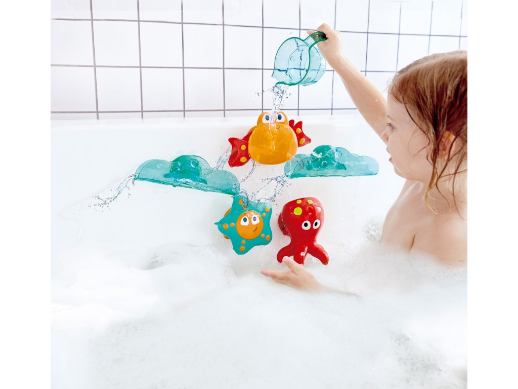 Děti milují koupání! Vodní dráha se zvířátky je perfektní pro hrátky ve vodě! Naplňte hrníček vodou, nalejte na kraba a sledujte, co se bude dít. Z rozhoupaného kraba se voda rozdělí, roztočí hvězdičku a z chobotnice se stane sprcha. Vodní dráha se zvířátky přináší spoustu zábavy při koupání. Poutavé barevné provedení. Vyrobeno z kvalitního a odolného materiálu. Věk: 24m+. Rozměr: 32 x 36 x 10 cm.
