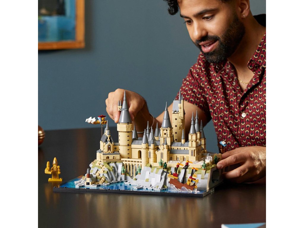 Podrobný návodna stavění najdete v krabici a v aplikaci LEGO® Builder. Přidejte loď Kruvalu, kočár Krásnohůlek, Ford Anglia zapletený do větví vrby Mlátičky, minifigurku architekta Bradavic a cedulku s nápisem „Hogwarts Castle“ („Bradavický hrad“) a vytvořte tak kouzelný výstavní kousek.