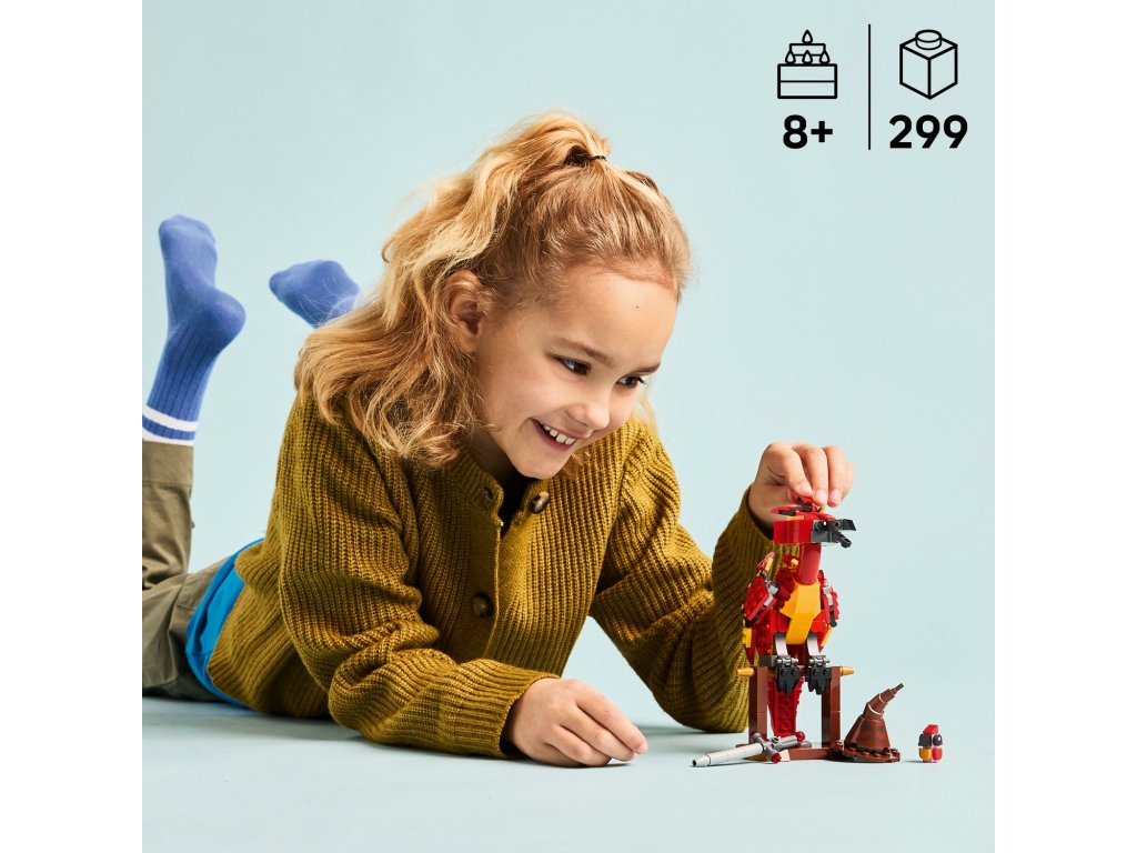 Malí fanoušci Harryho Pottera, kteří milují zvířata, si se stavebnicí LEGO® Harry Potter™ (76448) Fawkes: Brumbálův fénix postaví model stvoření ze světa čar a kouzel. Tato pohyblivá figurka Fawkese má drápy, pomocí kterých se může usadit na bidýlko, a součástí stavebnice je také Moudrý klobouk a Nebelvírův meč z kostek. Tato figurka bájného stvoření s ikonickými doplňky (a navíc roztomilou figurkou malého Fawkese!) poslouží jako krásný kouzelnický dárek pro holky, kluky a fanoušky Harryho Pottera od 8 let. Je navržena ke kreativnímu hraní a bude se vyjímat jako okouzlující dekorace pokoje. Model lze zkombinovat s dalšími sběratelskými stavebnicemi LEGO Harry Potter (prodávají se samostatně) a přinést dětem ještě více herních možností. Posuňte zábavný stavitelský zážitek dětí na novou úroveň s aplikací LEGO Builder. V ní si lze přibližovat a otáčet modely ve 3D, sledovat postup a ukládat stavebnice.