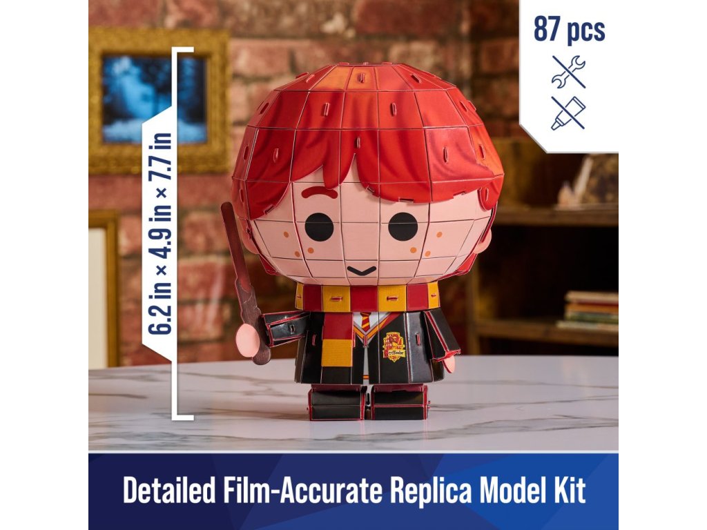 Pro fanoušky kouzelnického světa - tento 4D modely známých čarodějů si přímo říkají o vystavení na vaší poličce! Vydejte se na kouzelné dobrodružství s našimi uměleckými hračkami ze světa Harryho Pottera ve filmové kvalitě. Tato sada modelů 4D Build obsahuje detaily, jako je Harryho jizva ve tvaru blesku nebo nebelvírský plášť, úplně jako ve filmech! Získáte 8 desek s 87 vyjmutelnými dílky a snadný návod na sestavení. Není potřeba žádné lepidlo ani nářadí! Rozměry postavičky jsou 15,4 x 12,7 x 19,5 cm. Skvěle se hodí jako dekorace do ložnice, herny nebo jako ozdoba narozeninového večírku s tematikou Harryho Pottera - hrdě si své figurky vystavte. Pro nové mladé fanoušky kouzelnického světa - toto puzzle je perfektním dárkem pro každého dospívajícího superfanouška. Je to i ideální hračka pro dospělé fanoušky původních knih o Harrym Potterovi. Ať už milujete knihy o Harrym Potterovi, hru Hogwarts Legacy nebo kouzelné hůlky Harryho Pottera, toto puzzle 4D Build je pro vás jako stvořené. Podívejte se na další stavebnice a hračky s tematikou Harryho Pottera. Připravte si kouzelnickou hůlku Harryho Pottera a začněte stavět ještě dnes!