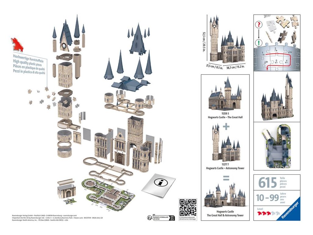 Zažijte jedinečnou kombinaci skládání a stavění a vytvořte si doma dokonalý model dobře známé části Bradavického hradu - Astronomické věže. Ponořte se do světa Harryho Pottera a žažijte spoustu dobrodružství s Harrym a jeho přáteli. Kvalitní, plastové puzzle s technologií Easyclick. Bez nutnosti lepení! Tento model Astronomické věže lze spojit s modelem Velké síně do jednoho impozantně velkého modelu Bradavického hradu.
