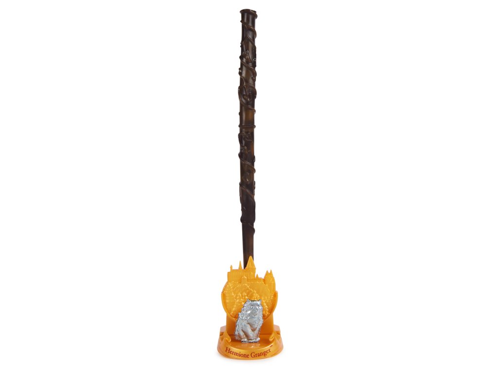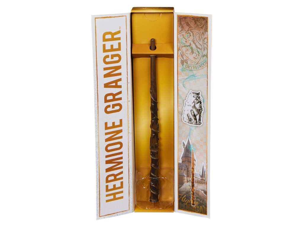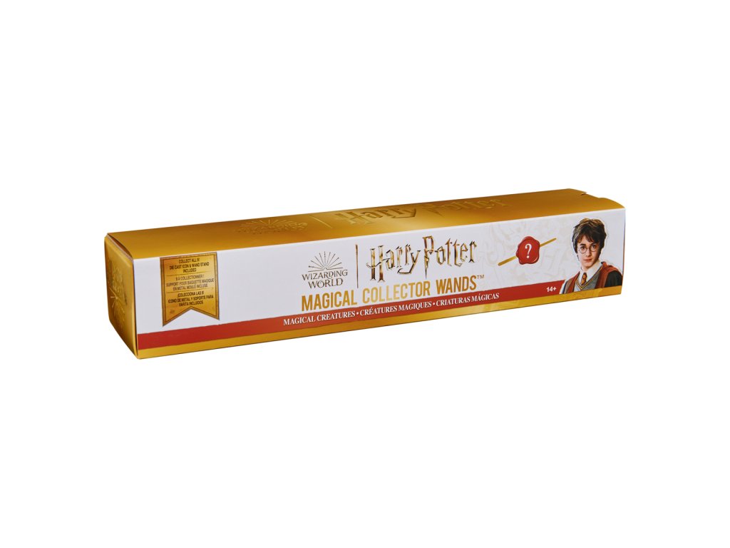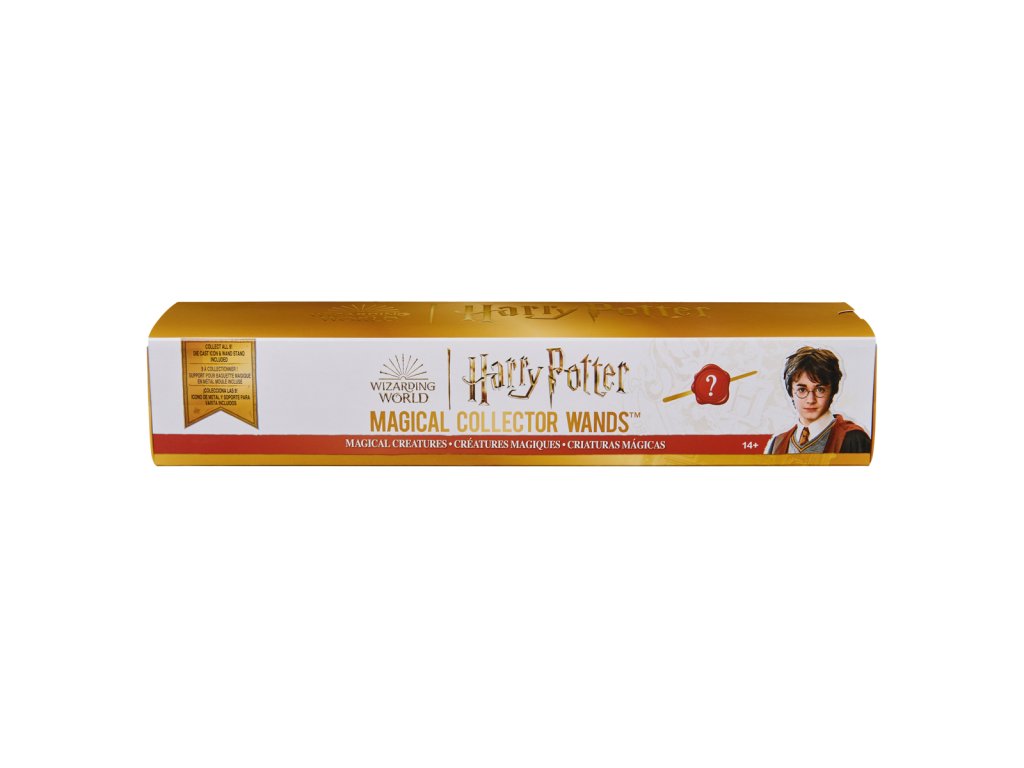 Zažijte kouzlo Harryho Pottera s hůlkami Wizarding World Magical Collector Wands ze série Magical Creatures! Tyto tajemné sběratelské předměty ze série Harry Potter jsou nepostradatelné pro všechny fanoušky a sběratele. Stejně jako ve filmech platí, že hůlka si vybírá svého čaroděje! Uvnitř neprůhledné krabičky je jako překvapení schovaná 30 cm hůlka s kovově zlatým podstavcem se znakem Bradavic a kovovým doplňkem jedinečným pro danou postavu. Každá replika kouzelnické hůlky obsahuje autentické detaily a je dole zatížená, aby byla ideální pro hraní příběhů. Přehrajte si své oblíbené scény a vykouzlete svá oblíbená kouzla! Svou hůlku můžete vystavit v luxusním obalu nebo ji svisle či vodorovně umístit na stojánek. Jedinečný kovový doplněk s tématem Magical Creatures sedne přímo na základnu – objevte Hedviku s Harryho hůlkou, Křivonožku s Hermioninou hůlkou, trpaslenku Arnolda s Ginnyinou hůlkou, žabáka Trevora s Nevillovou a řadu dalších! Rozšiřte svůj kouzelnický svět o hůlky Magical Collector Wands z každé série, včetně hůlky Harryho Pottera, Hermiony Grangerové, Rona Weasleyho, Brumbála, Voldemorta a dalších postav (prodávají se zvlášť)! Hračky ze série Wizarding World Harry Potter jsou nezbytným dárkem pro fanoušky a pro děti, které mají rády sběratelské předměty, kouzelné hůlky, akční figurky a doplňky k nim. Sběratelské kouzelné hůlky Magical Collector Wand jsou skvělým překvapivým dárkem k narozeninám i Vánocům nebo ideální radostí při jakékoliv příležitosti. Objevte svět kouzel s hůlkami Wizarding World Magical Collector Wands ze série Magical Creatures!
