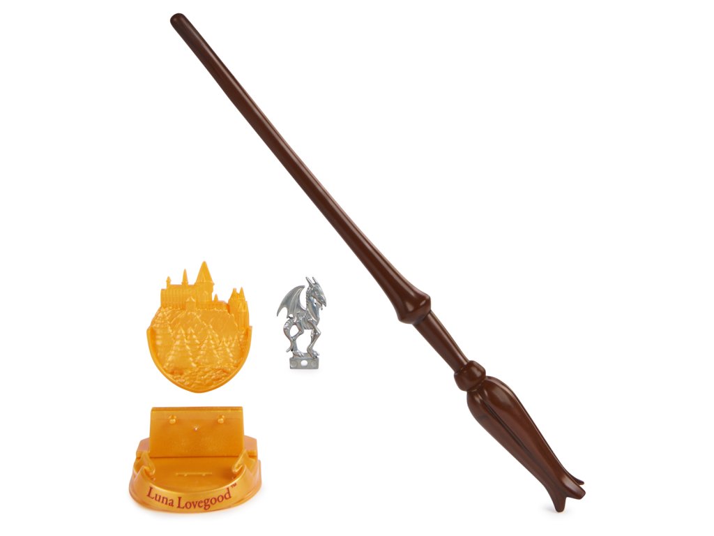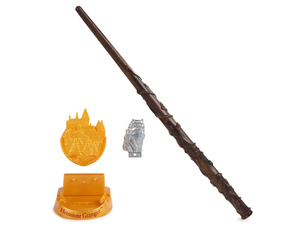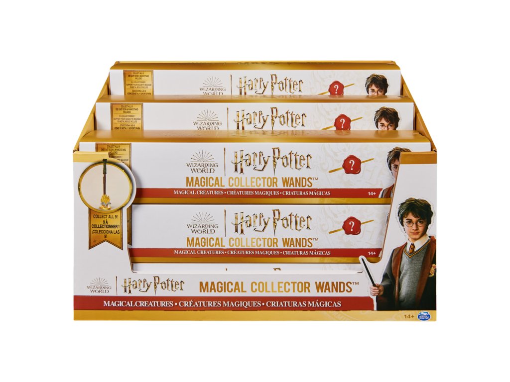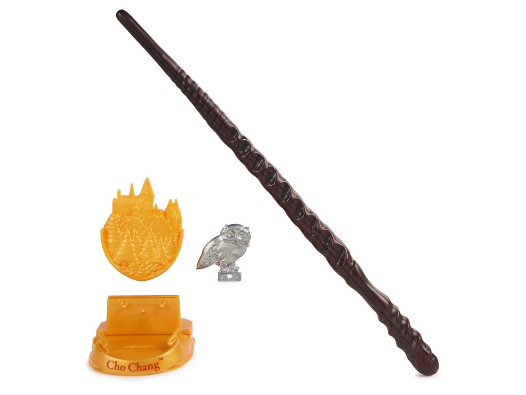 Zažijte kouzlo Harryho Pottera s hůlkami Wizarding World Magical Collector Wands ze série Magical Creatures! Tyto tajemné sběratelské předměty ze série Harry Potter jsou nepostradatelné pro všechny fanoušky a sběratele. Stejně jako ve filmech platí, že hůlka si vybírá svého čaroděje! Uvnitř neprůhledné krabičky je jako překvapení schovaná 30 cm hůlka s kovově zlatým podstavcem se znakem Bradavic a kovovým doplňkem jedinečným pro danou postavu. Každá replika kouzelnické hůlky obsahuje autentické detaily a je dole zatížená, aby byla ideální pro hraní příběhů. Přehrajte si své oblíbené scény a vykouzlete svá oblíbená kouzla! Svou hůlku můžete vystavit v luxusním obalu nebo ji svisle či vodorovně umístit na stojánek. Jedinečný kovový doplněk s tématem Magical Creatures sedne přímo na základnu – objevte Hedviku s Harryho hůlkou, Křivonožku s Hermioninou hůlkou, trpaslenku Arnolda s Ginnyinou hůlkou, žabáka Trevora s Nevillovou a řadu dalších! Rozšiřte svůj kouzelnický svět o hůlky Magical Collector Wands z každé série, včetně hůlky Harryho Pottera, Hermiony Grangerové, Rona Weasleyho, Brumbála, Voldemorta a dalších postav (prodávají se zvlášť)! Hračky ze série Wizarding World Harry Potter jsou nezbytným dárkem pro fanoušky a pro děti, které mají rády sběratelské předměty, kouzelné hůlky, akční figurky a doplňky k nim. Sběratelské kouzelné hůlky Magical Collector Wand jsou skvělým překvapivým dárkem k narozeninám i Vánocům nebo ideální radostí při jakékoliv příležitosti. Objevte svět kouzel s hůlkami Wizarding World Magical Collector Wands ze série Magical Creatures!