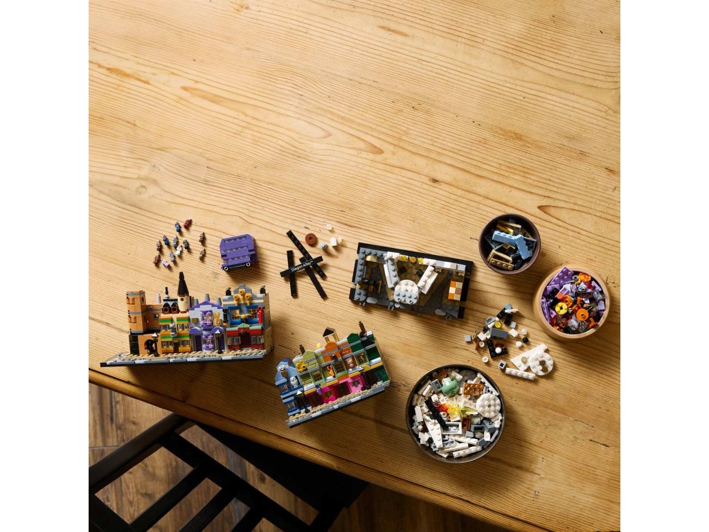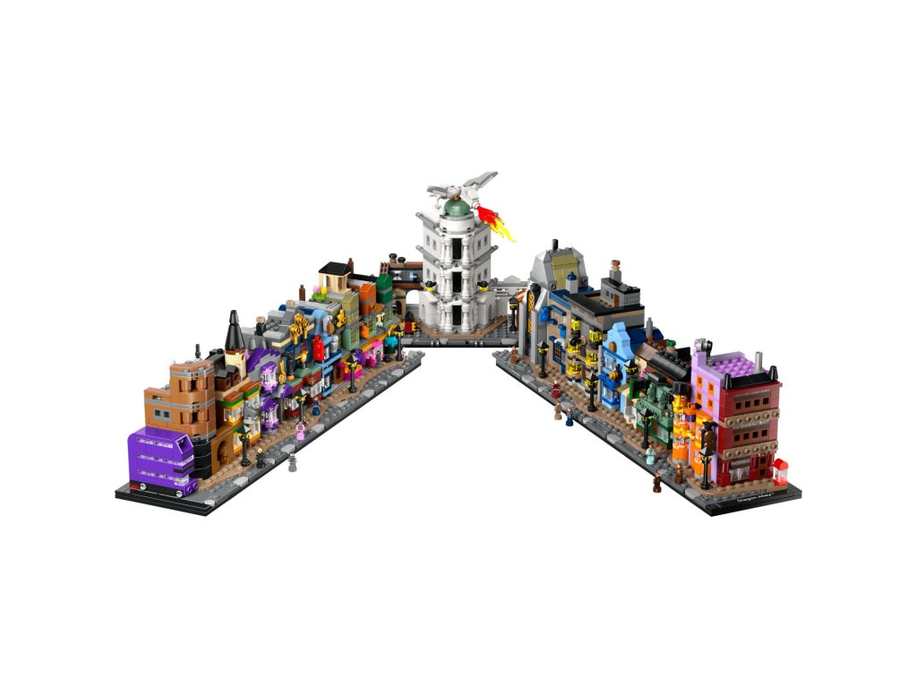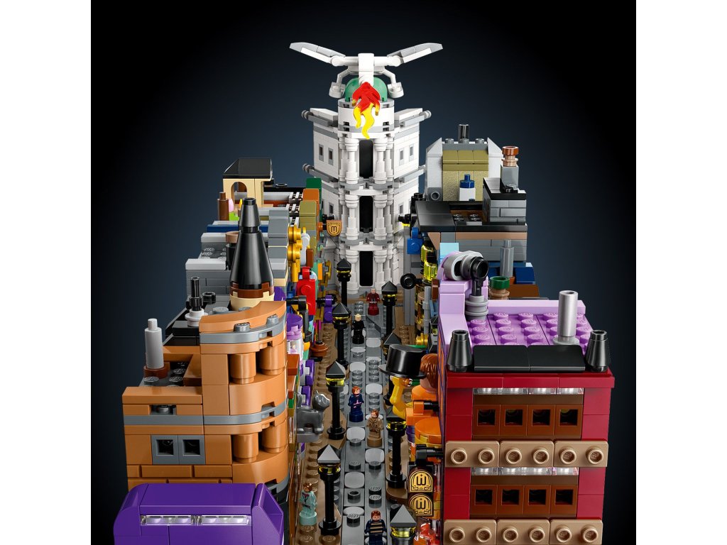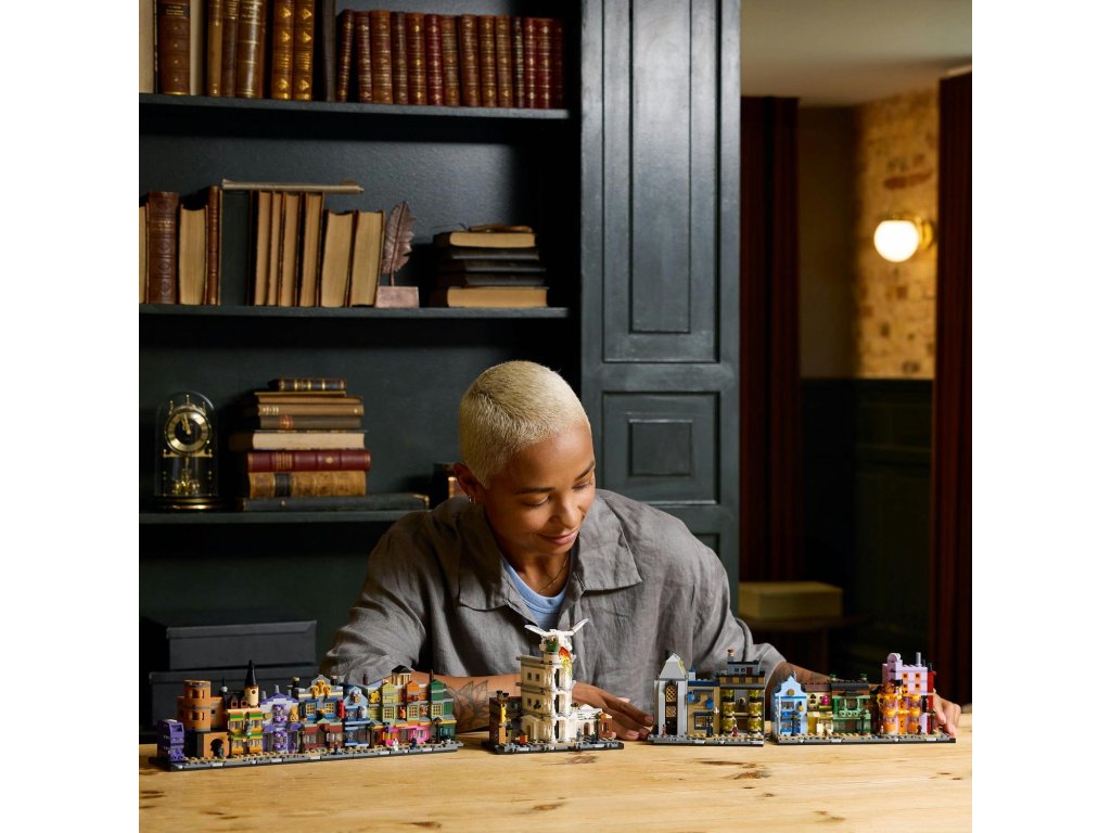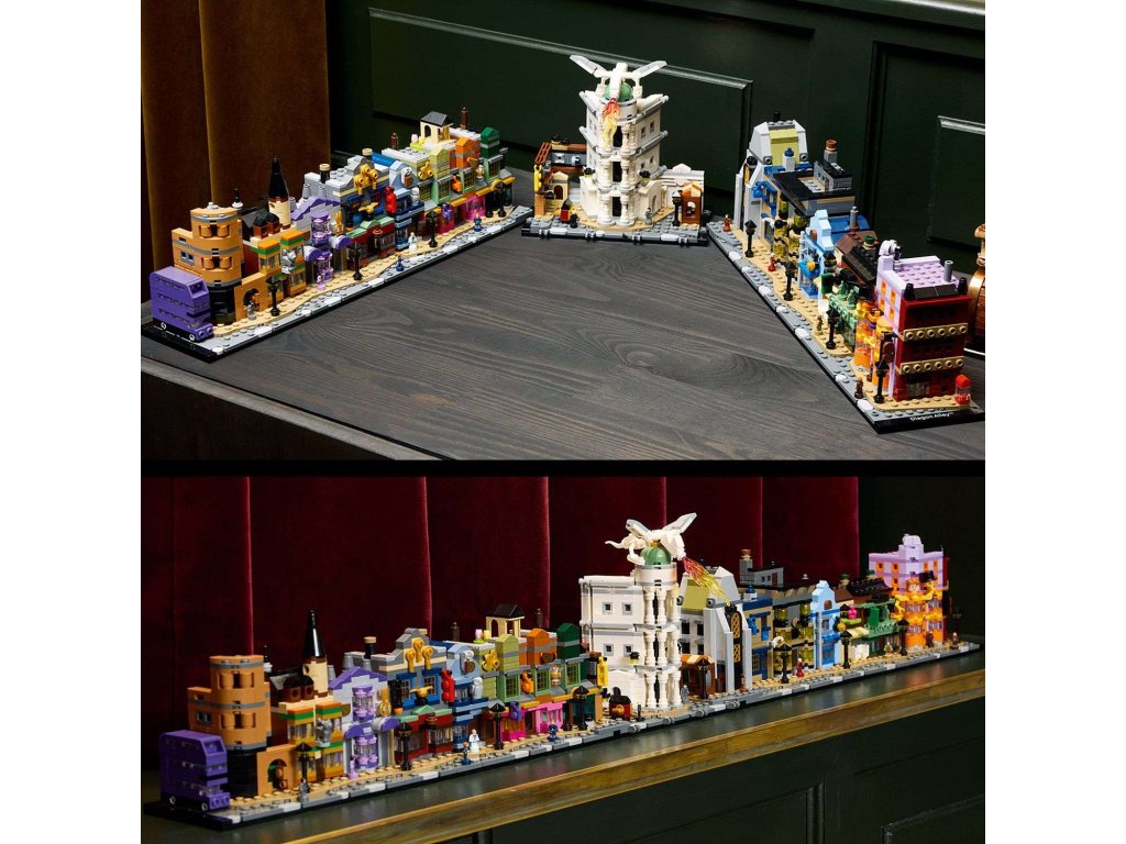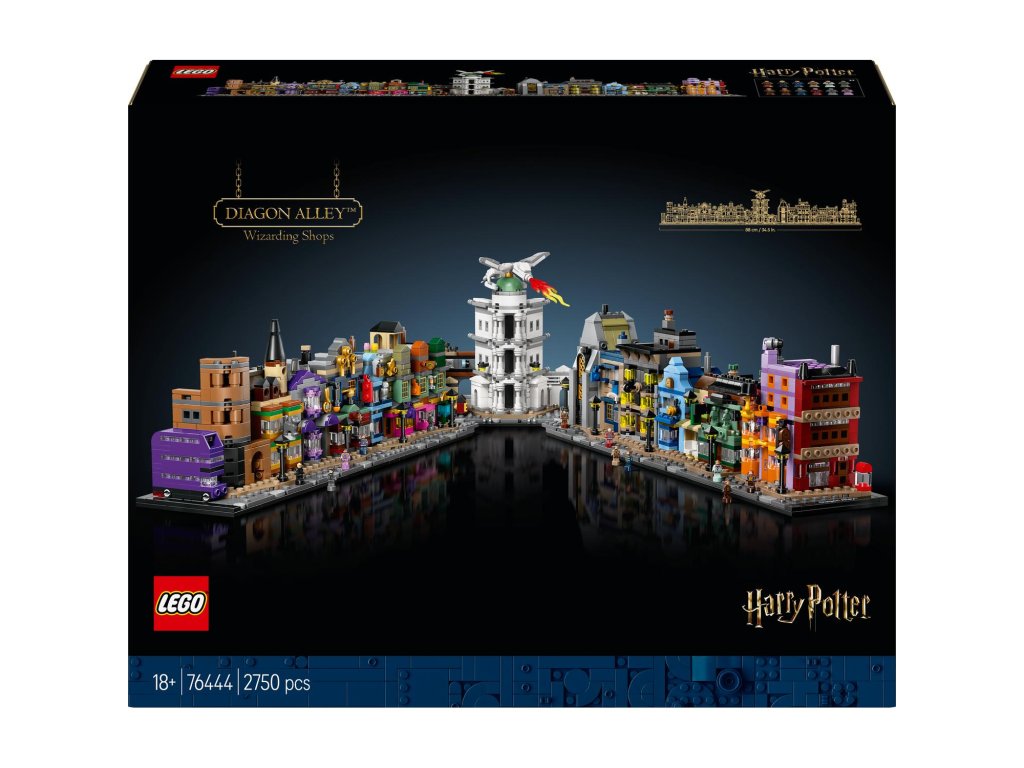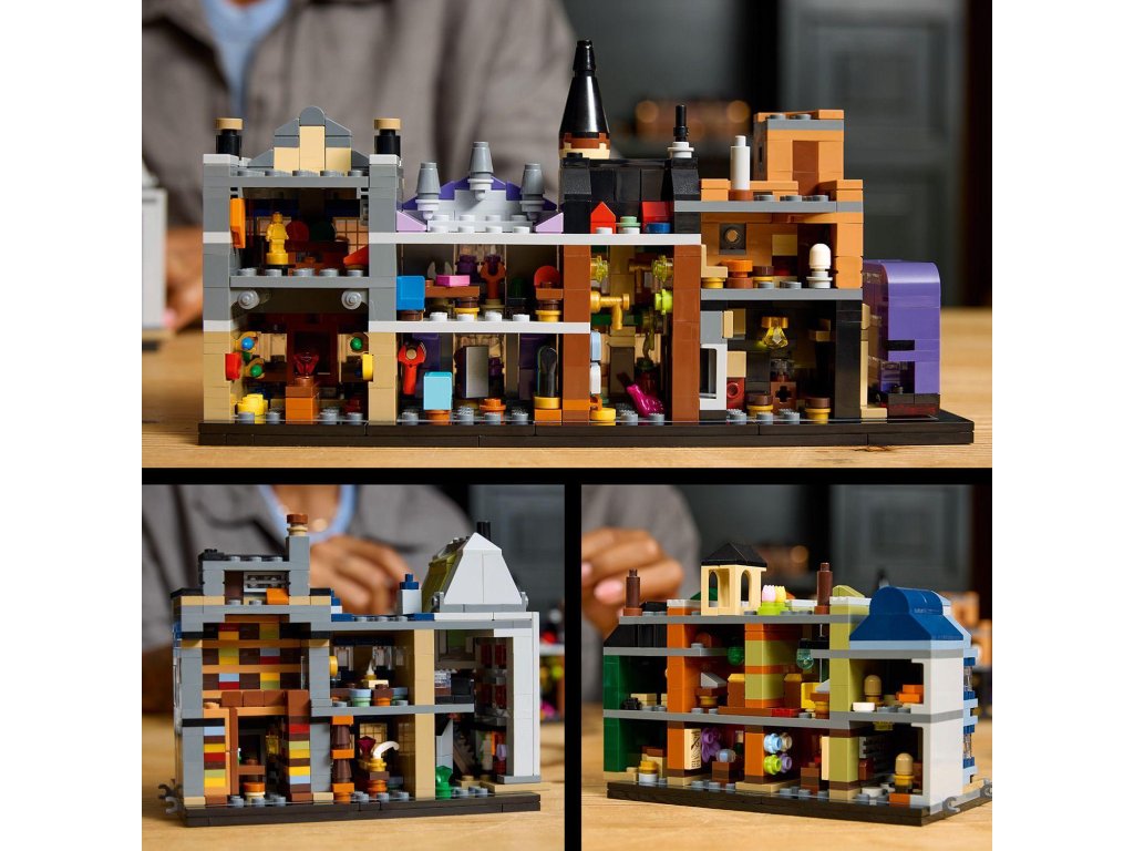 Utečte do kouzelného světa s tímto propracovaným miniaturním výstavním modelem Kouzelnických obchodů v Příčné ulici (76444) z řady LEGO® Harry Potter™. Tato magická stavebnice z kostek LEGO vybízí dospělé fanoušky fantasy dobrodružství Harryho Pottera, aby si postavili slavné obchody v Příčné ulici, včetně Kratochvilných kouzelnických kejklí, zmrzlinářství Floreana Fortescuea, Ollivanderova obchodu, lékárny, Gringottovy kouzelnické banky, Děravého kotle a redakce Denního věštce. Každá budova se pyšní rozpoznatelnými prvky exteriéru a uvnitř najdete nádherné reference na filmy. Tento kouzelný výstavní model bude nádhernou dekorací ve kterékoli místnosti. Vystavte si ho jako oboustrannou ulici, jako jednu dlouhou řadu budov nebo model rozdělte na 5 částí, abyste si mohli zblízka prohlédnout jednotlivé budovy. Přidejte 12 jedinečných mikrofigurek LEGO Harry Potter a Záchranný kouzelnický autobus a připomeňte si klasické scény. Tato miniaturní stavebnice je součástí řady modelů LEGO pro dospělé a jedná se o skvělou odměnu, kterou můžete potěšit sami sebe, nebo úžasný dárek pro fanoušky Harryho Pottera.