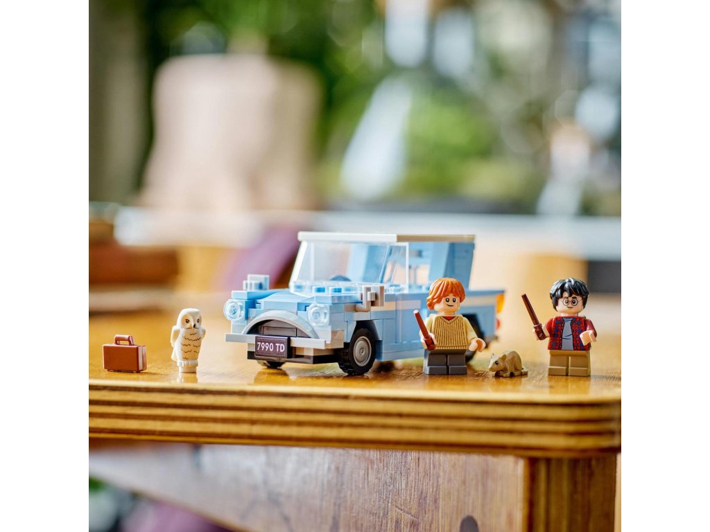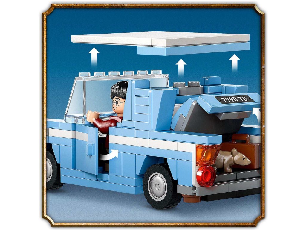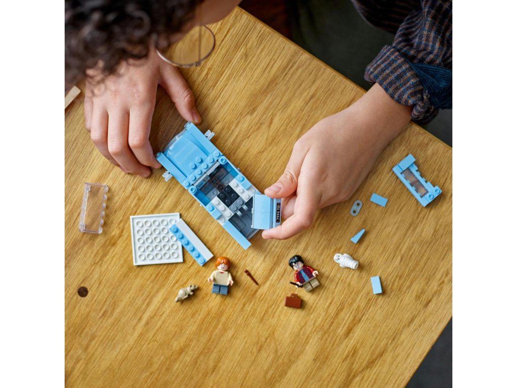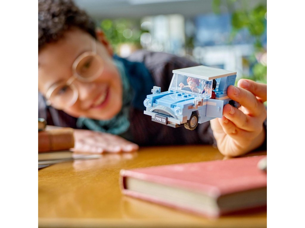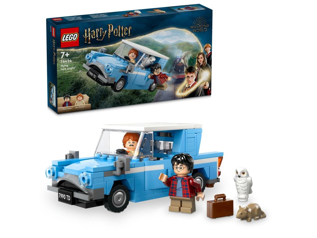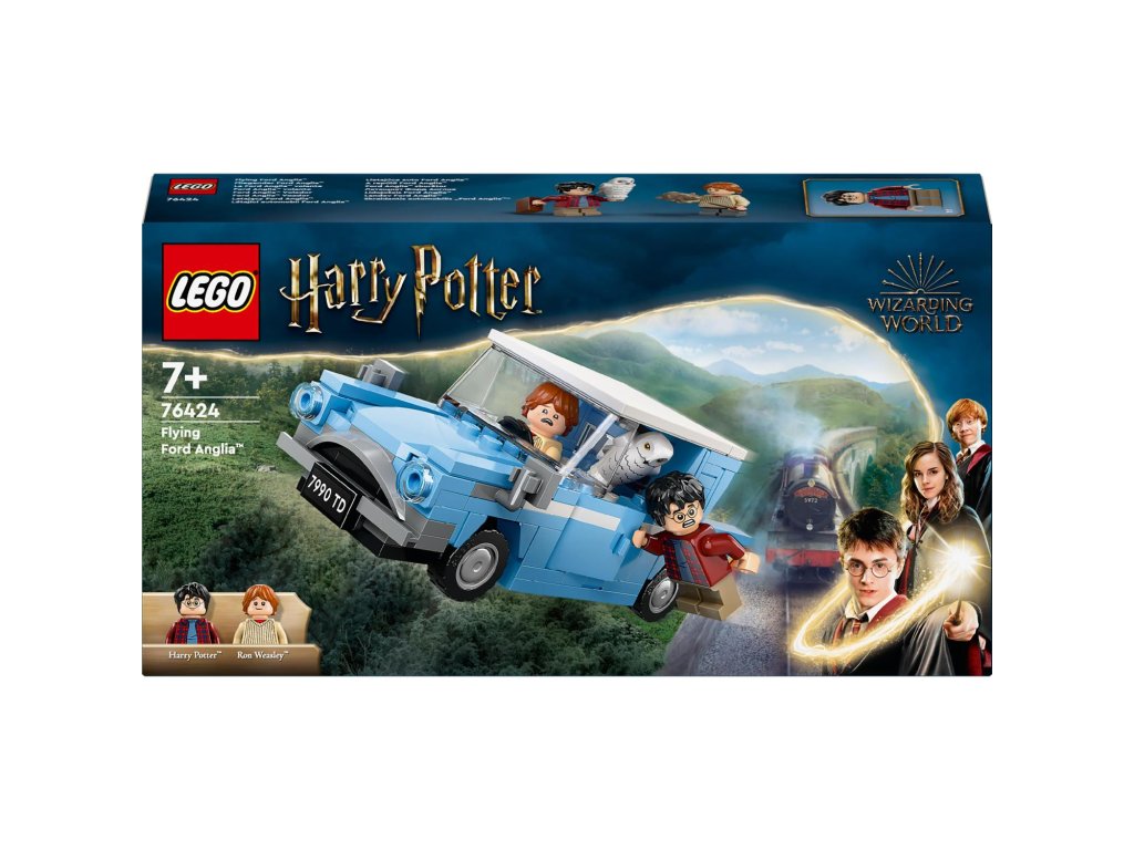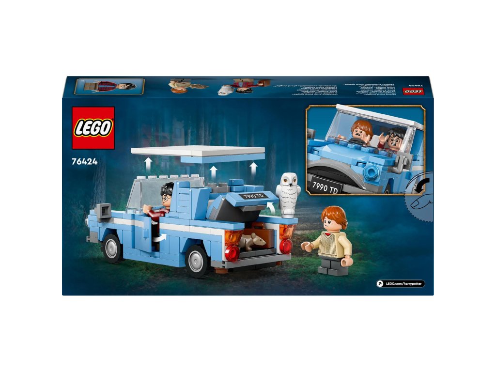 Potěšte děti od 7 let fantastickou stavebnicí Létající automobil Ford Anglia™ (76424), se kterou si připomenou napínavou cestu Harryho Pottera a Rona Weasleyho do Bradavic. Součástí tohoto dobrodružného modelu z kostek LEGO® jsou otevírací dveře a odnímatelná střecha, takže minifigurku Harryho Pottera a Rona Weasleyho i figurku sovy Hedviky snadno usadíte dovnitř. V kufru je místo na zavazadlo, Harryho a Ronovu hůlku a vejde se sem také Ronova krysa Prašivka.