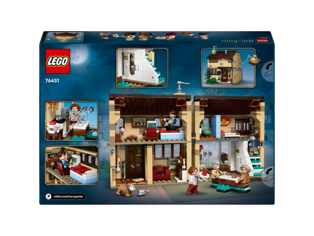 Tato fantastická dobrodružná stavebnice představuje kouzelný vánoční nebo narozeninový dárek pro kluky, holky a fanoušky od 8 let a obsahuje 5 minifigurek LEGO Harry Potter a figurku psa Raťafáka. Nechybí ani figurka nafouknuté tety Marge z vtipné scény, ve které na ni Harry sešle kouzlo, po kterém se nafoukne jako balón. Součástí je také menší model s nápisem „Privet Drive“ („Zobí ulice“) a pouličním osvětlením.