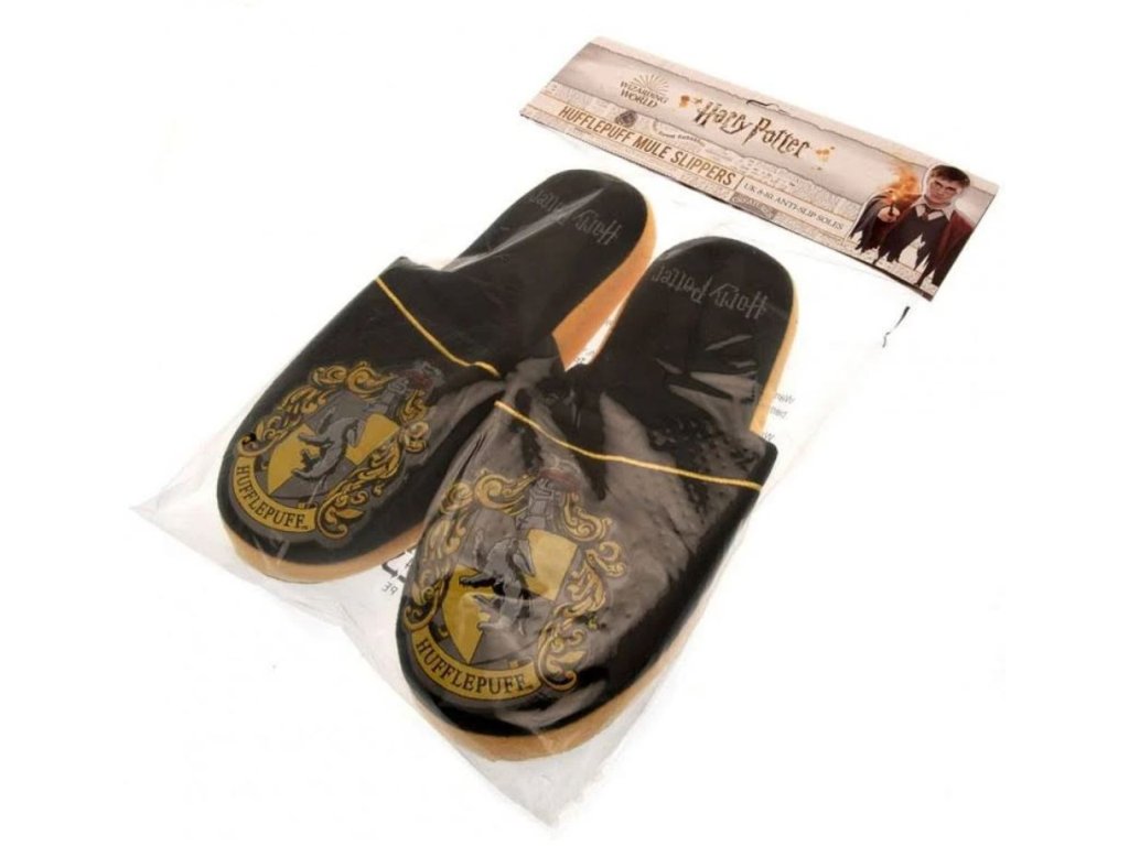 Nazouvací trepky s grafikou kolejí Mrzimor (Hufflepuff) z Bradavické školy čar a kouzel ze světa Harryho Pottera. Trepky poskytují pohodlí pro každého fanouška, který chce využít kouzlo teplých nožiček.