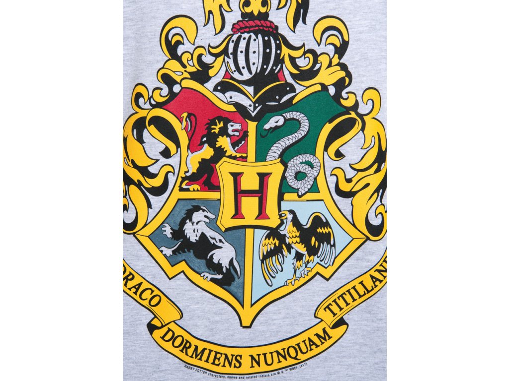 Šedé pánské tričko s hlavním erbem školy čar a kouzel v Bradavicích z populární kouzelnické sci-fi ságy Harryho Pottera.