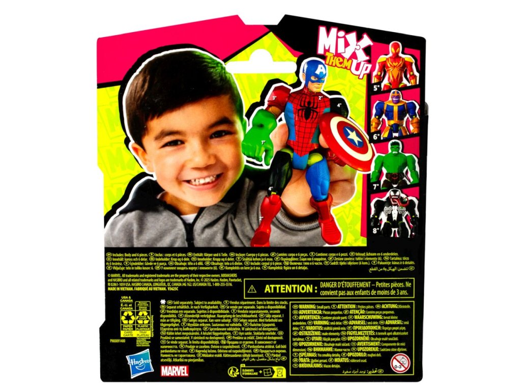 I ti nejmocnější superhrdinové někdy potřebují pomocnou ruku...nohu, pěst nebo příslušenství. Sběratelské akční figurky MixMashers Marvel obsahují části a dílky, které se oddělují a spojují dohromady a vytvářejí jedinečně přizpůsobené figurky. Figurky MixMashers o velikosti 12 cm mají 16 připojovacích bodů a mají univerzální konektory pro kompatibilitu a odolnost v celé řadě. Děti mohou vytvářet figurky superhrdinů Marvelu, které mohou rozložit, kombinovat a míchat dohromady bláznivými, osobitými způsoby. Díky milionům kreativních způsobů, jak vyměnitelné díly mixovat, tyto hračky Marvel podporují hodiny nápadité hry při vytváření jedinečných figurek. Figurka Marvel Captain America je dodávána se štítem a s fialovým silovým drápem Black Panthera. Vyrobeno z kvalitního plastu. Baleno v blistru. Výška figurky: 12 cm. Rozměry balení: 20,3 x 17,8 x 3,8 cm. Věk: 4+