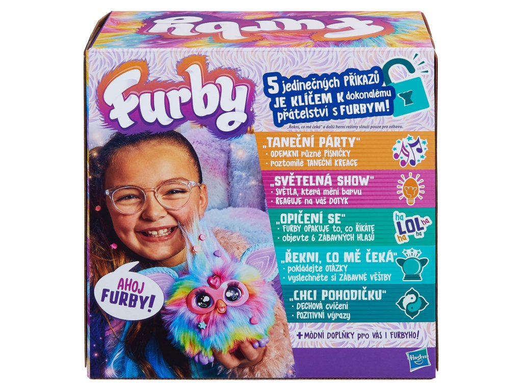Přichází Furby v CZ verzi! Toto roztomilé zvířátko je interaktivní hračka s pěti hlasově aktivovanými režimy a více než 600 frázemi, vtipy, písničkami a dalšími funkcemi, které vás vybízejí ke hře. Stačí Furbymu vyslovit 5 příkazů a přepne se do příslušného herního režimu. Taneční party: odemkni různé písničky a sledujte Furbyho roztomilé taneční kreace. Světelná show: světla, která mění barvu, Furby reaguje na váš dotyk. Opičení se: Furby opakuje to, co říkáte, objevte jeho 6 zábavných hlasů. Řekni, co mě čeká: pokládejte otázky a vyslechněte si zábavné věštby. Chci pohodičku: dechová cvičení a pozitivní výrazy. Furby reaguje, když ho někdo obejme, pohladí po hlavě, zatřese s ním nebo ho nakrmí jeho vlastním pizza tagem (nebo prstem). Čím více si s ním dítě hraje, tím více zábavy se odemkne. O Furbyho lze láskyplně pečovat krmením a česáním. Poté ho lze stylizovat pomocí připojitelných korálků a pro jeho majitele lze navrhnout i skvělé módní doplňky. Elektronická plyšová hračka je vhodná pro dívky a chlapce od 6 let a je zábavným společníkem, kterého mohou mít děti vždy po svém boku. Vyžaduje baterie: 4 x AA baterie (nejsou součástí balení). Interaktivní hračka se nepřipojuje k internetu. Jasnovidectví a další herní režimy slouží pouze pro zábavné účely. Rozměry balení: 22,86 x 22,86 x 12,7 cm. Věk: 6+
