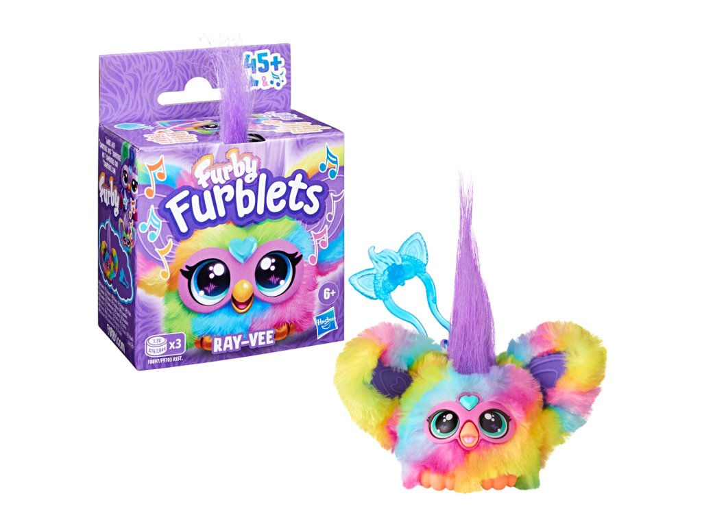 Stiskněte tlačítko srdce Furbyho Furblet Electric Rave a uslyšíte jak Ray-Vee hraje své vlastní jedinečné melodie ve stylu elektroniky. Malí plyšoví kamarádi Furby s neuvěřitelně výraznou osobností! Každý z šesti Furblets má svůj jedinečný hlas a charakter odpovídající hudebnímu stylu, který reprezentuje. Furblets mají přes 45 zvukových reakcí a dokážou harmonizovat, společně zpívají písně a interagují s velkou hračkou Furby! Výška plyšáka 5 cm. Provoz hračky na 3 LR44 baterie (jsou součástí balení). Rozměry balení: 12,7 x 9,5 x 5,3 cm. Věk: 6+