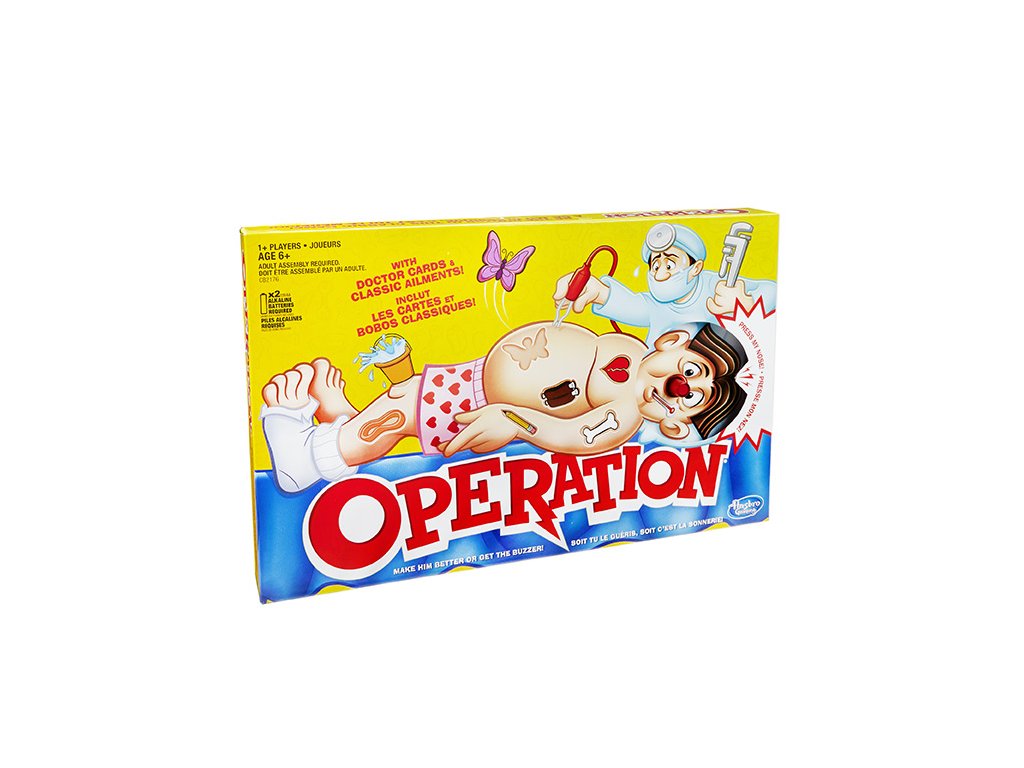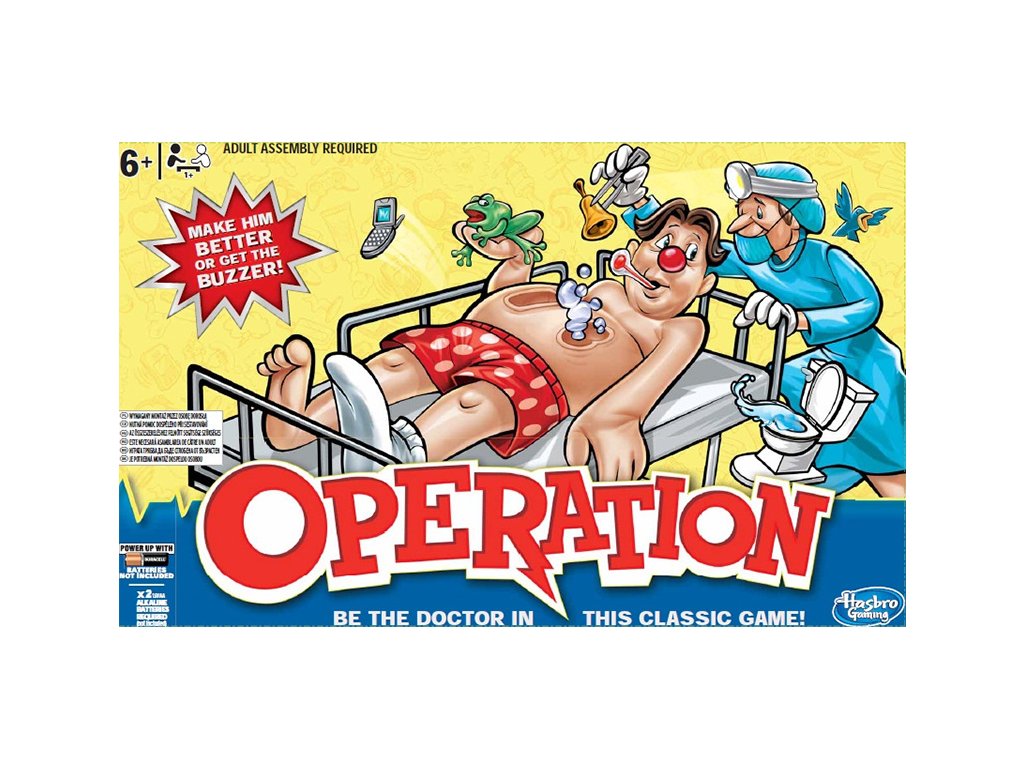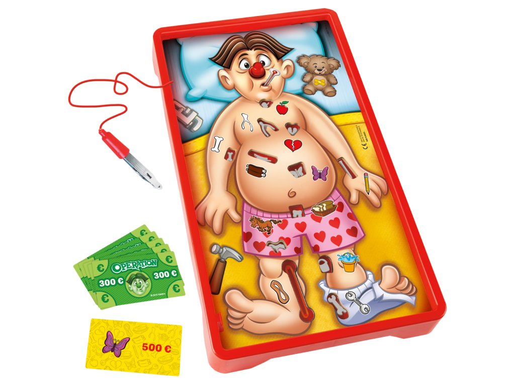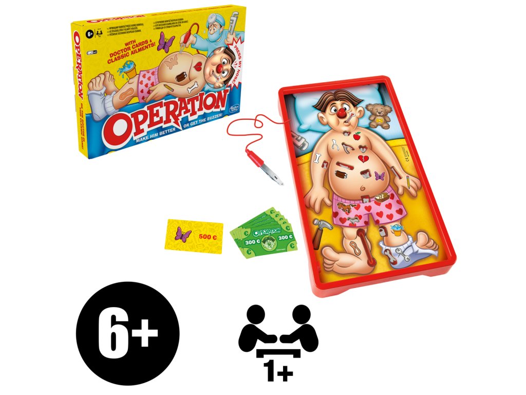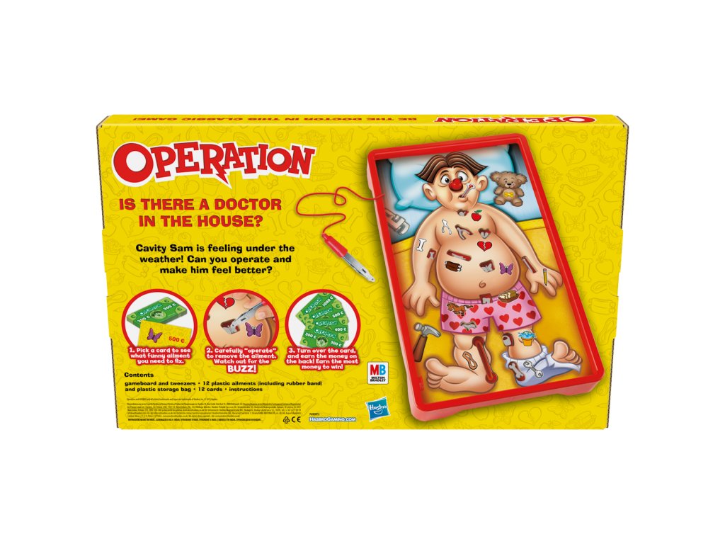 Oblíbená rodinná operační hra se opravdovými nemocemi. Pomozte Samovi být opět ve formě. Pomocí pinzety odstraňte všech 12 Samových srandovních neduhů. Hráči si vybírají lékařskou kartu a "operují", aby Sama vyléčili. Vyhni se varovnému bzučení, vybírej peníze a vyhraj!