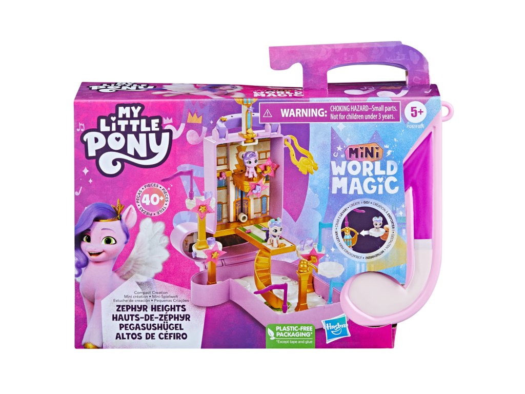 Vytvoř si svět kouzelných mini kamarádů z celé Equestrie! Sady My Little Pony Mini World Magic se skládají z rozkošných postaviček inspirovaných seriálem My Little Pony. Tato sada obsahuje 2 rozkošné figurky: Princezna Pipp Petals a královna Haven! Součástí balení je více než 40 dílků pro přizpůsobení scény v Zephyr Heights. Postav svět s věžemi a mraky, nastav královský výtah a zavěs látkové hvězdy. Naplň nádobu s mraky studenou vodou a vlož do ní pamlsky, aby se odhalily barvy. Představ si, jak s Pippem a královnou Haven hledáš svačinky v mracích! Rozměry balení: 16,5 x 19,5 x 4,5 cm. Věk: 5+