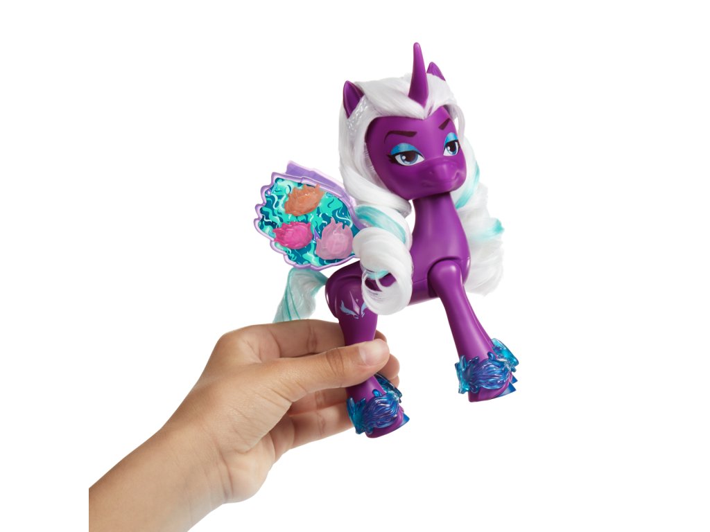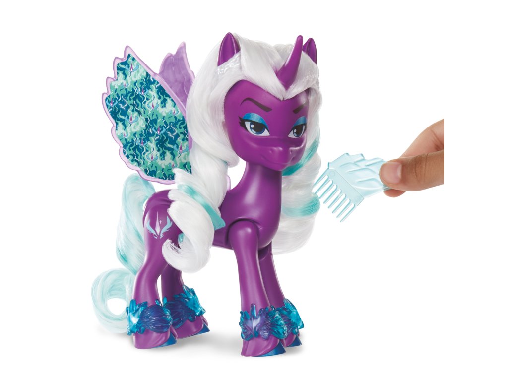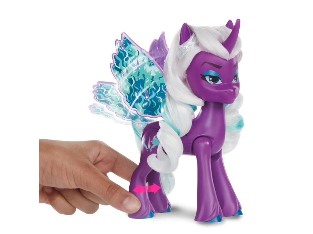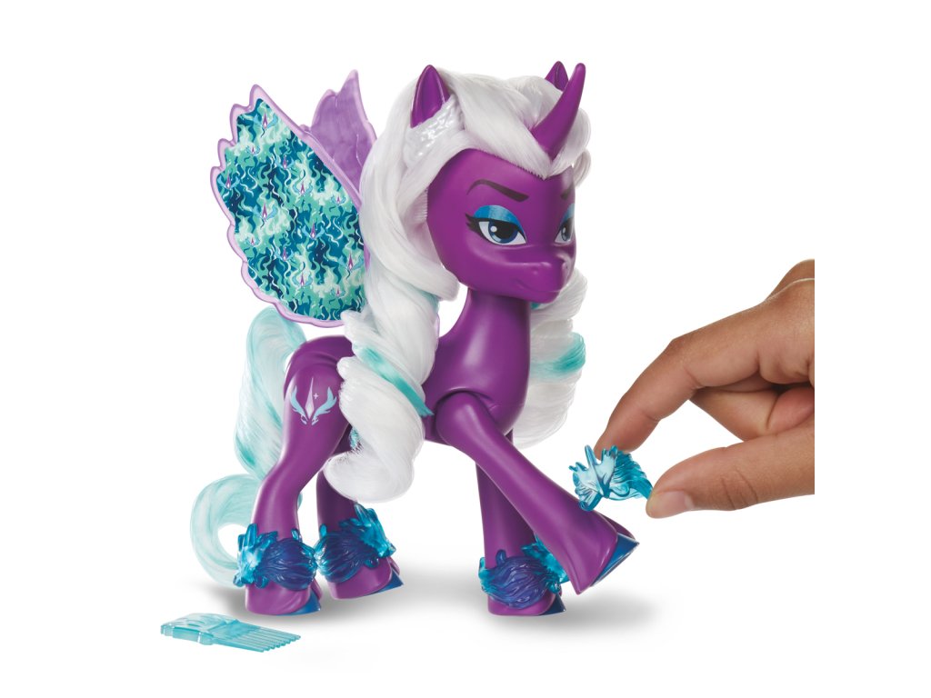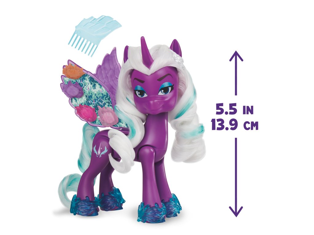 Objevte kouzelná tajemství s hračkou My Little Pony Wing Surprise Opaline Arcana! Opaline je zloduch z rodu Ohnivých alicornů, který se snaží ukrást poníkům Cutie Marks v seriálu My Little Pony. Připoj barevné přívěsky k Opalininým krásným křídlům! Pak zmáčkni zadní nohy figurky, aby se její křídla třepotala nahoru a dolů. Součástí balení je 10 doplňků pro stylizaci. Přizpůsob si její vzhled pomocí 4 náramků inspirovanými seriálem, které se připojují k jejím nohám. Tato panenka My Little Pony je fialová figurka Alicorna s Alicorn Cutie Mark na jedné straně. Figurka má měkké, dlouhé bílé vlasy a hřeben pro zábavný styling! Rozměry balení: 20 x 20,5 x 6,5 cm. Věk: 5+
