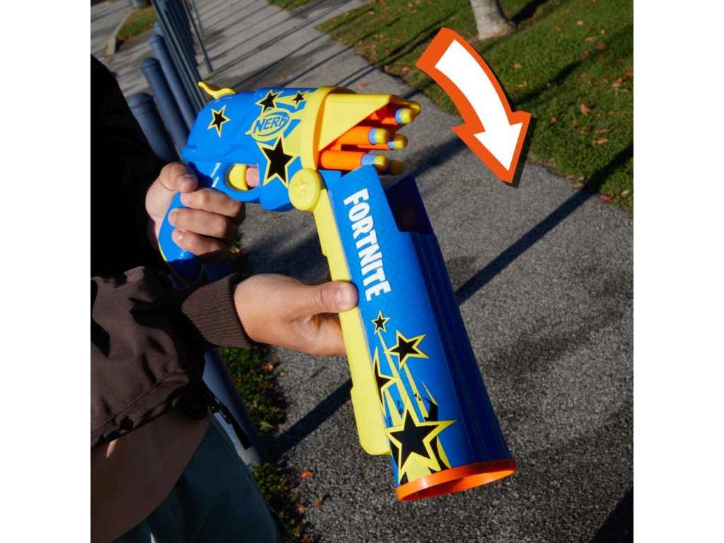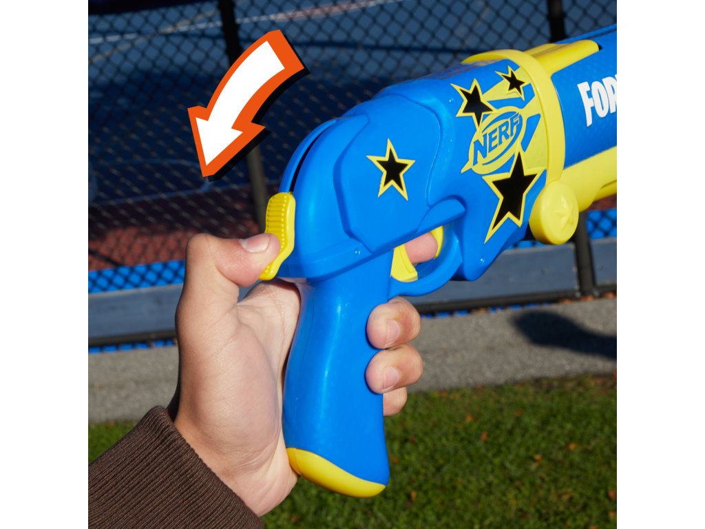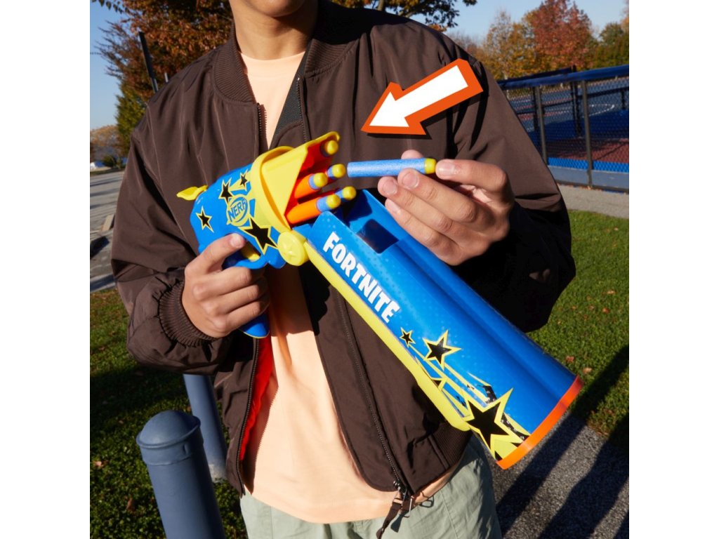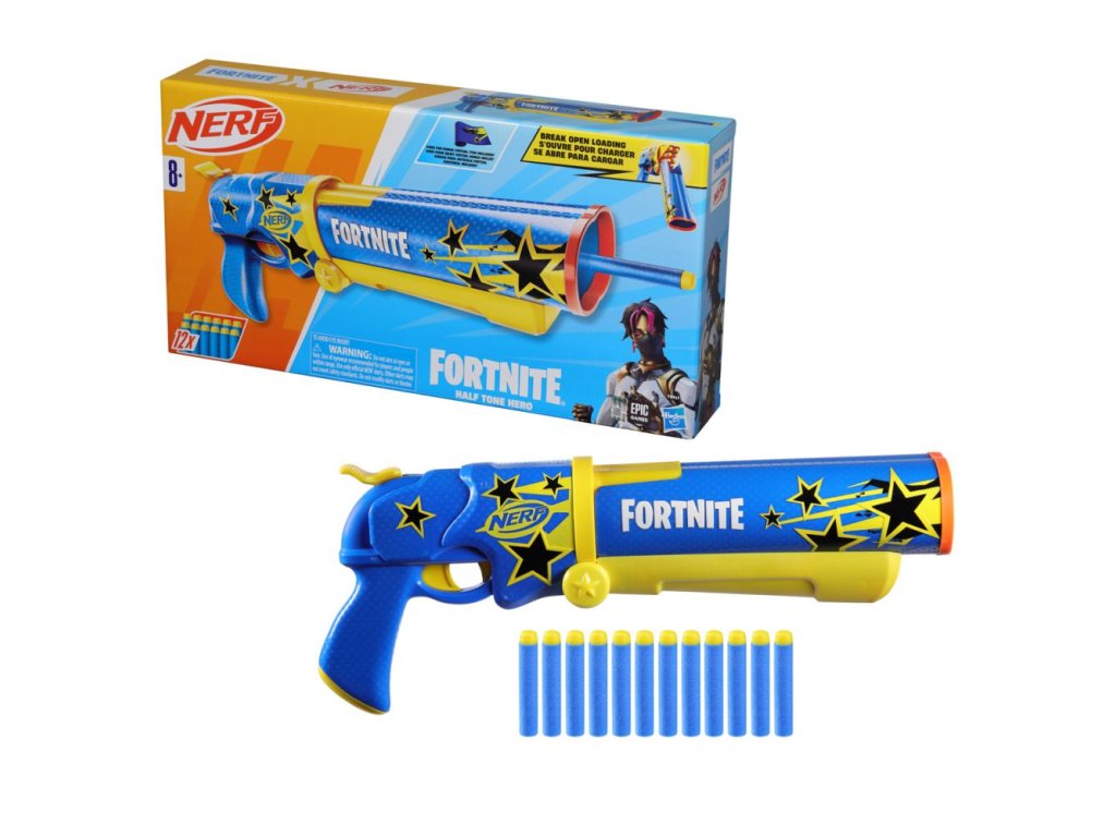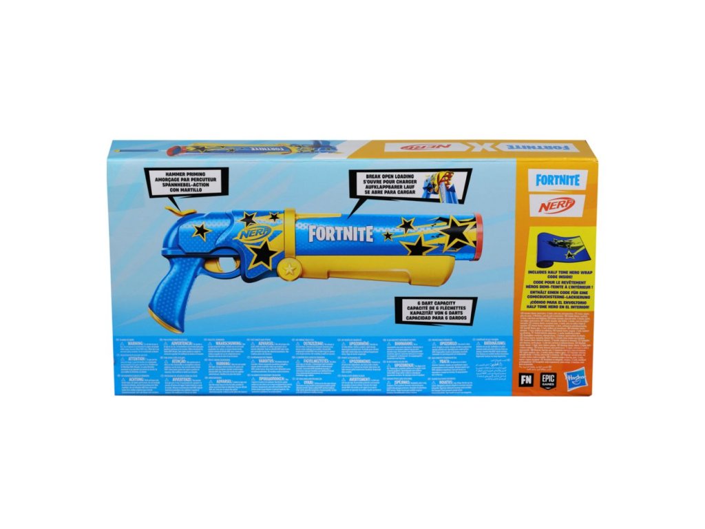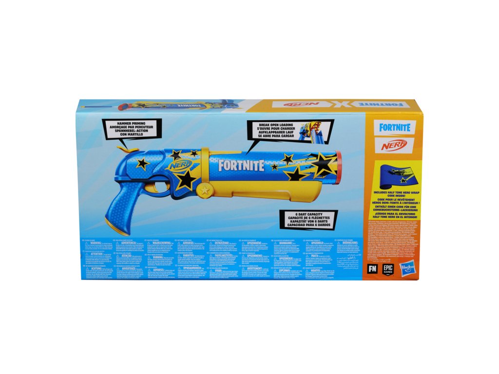 Blaster Nerf Fortnite Half Tone Hero je inspirován vybavením používaným ve hře Fortnite a je dodáván v designu Half Tone Hero Wrap z populární videohry. Blaster Nerf má otevřenou hlaveň pro zábavný způsob nabíjení šipek. Blaster má kapacitu pro 6 šipek a balení obsahuje 12 pěnových šipek Nerf Elite, což vám poskytne další šipky pro přebíjení. Pěnové šipky Nerf jsou ideální pro bitvy v interiéru i exteriéru. Blaster Half Tone Hero je skvělý dárek pro fanoušky Fortnite a skvělý doplněk do sbírek Nerf blasterů. Vyrobeno z kvalitního plastu. Při hraní se doporučuje použít bezpečnostní dětské brýle (nejsou součástí balení). Baleno v krabičce. Rozměr balení: 23,5 x 45,7 x 7,9 cm. Věk: 8+