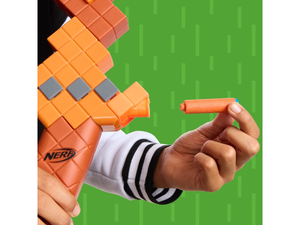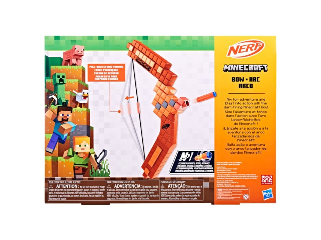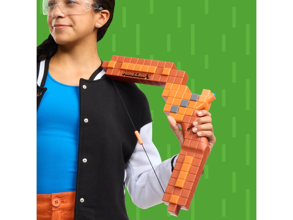 Jedinečný blaster v podobě luku Nerf inspirovaný hrou Minecraft. Dětský blaster Nerf Minecraft luk vyzývá k neúprosnému souboji a skvělé zábavě. Nerf Minecraft luk čerpá inspiraci z luku v populární hře. Zažijte dalekonosnou střelbu z luku ve hře v reálném životě, když natáhnete tětivu zpět a uvolníte ji, abyste nechali šipku letět. Nerf Minecraft luk obsahuje osm oficiálních šipek Nerf N1, které jsou navrženy pro extrémní přesnost, rychlost a vzdálenost. Je skvělou volbou pro akční děti a fanoušky Minecraftu. Vyrobeno z kvalitního plastu. Při hraní se doporučuje použít bezpečnostní dětské brýle (nejsou součástí balení). Rozměr balení: 33,7 x 45,7 x 4,4 cm. Věk: 8+
