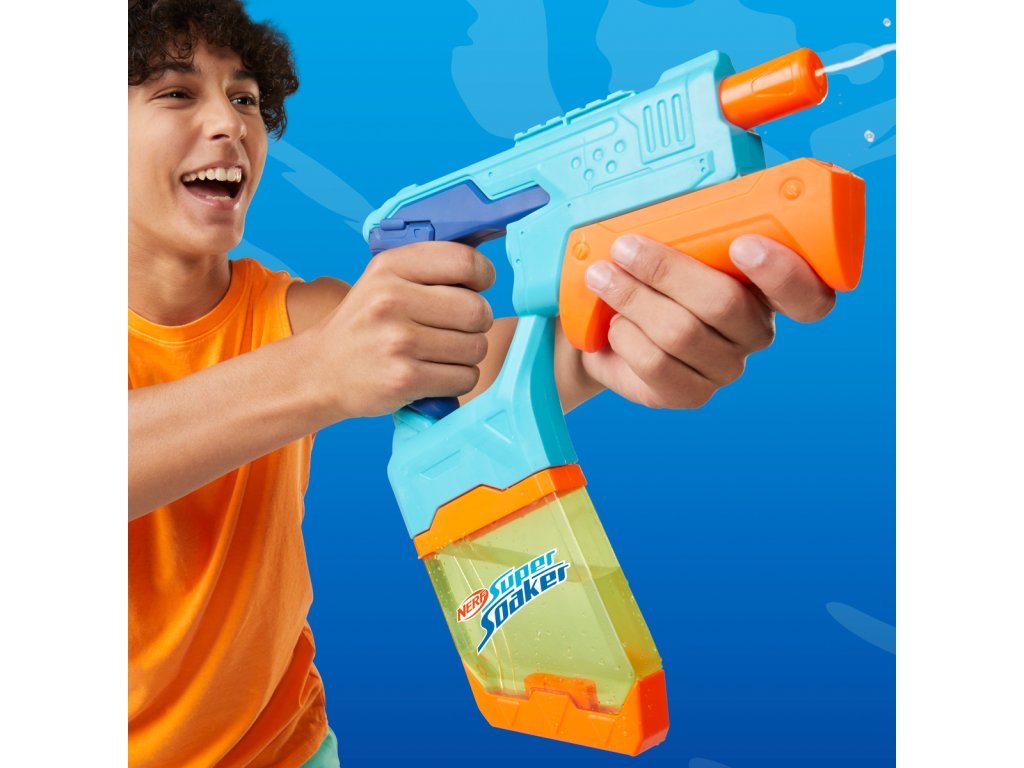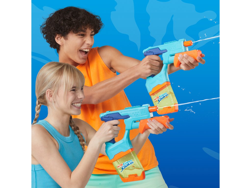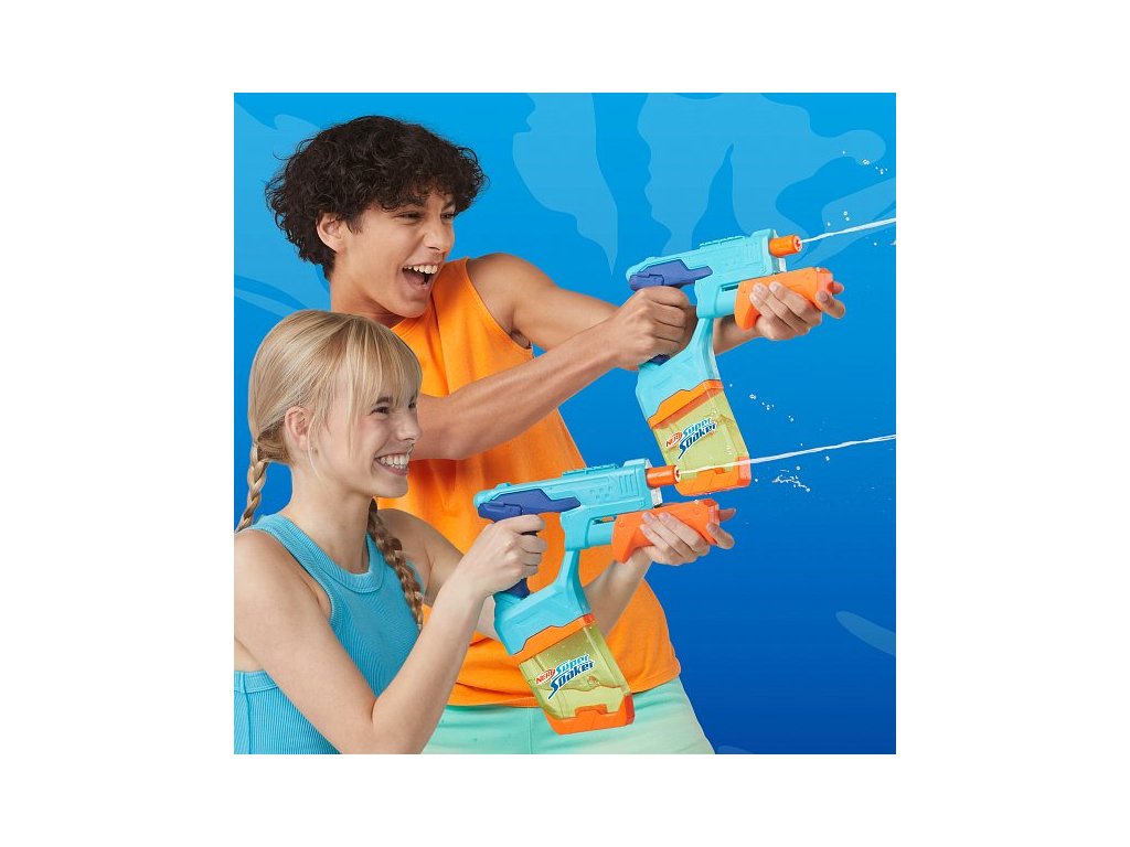 Nerf Super Soaker Dunk-Fill 2 – Pack obsahuje dva vodní blastery, které umožňují rychlé a jednoduché plnění, takže můžete být během okamžiku připraveni na vodní dobrodružství. Díky inovativní konstrukci nádržky se voda napustí prakticky okamžitě – stačí jednoduše ponořit blaster do vody a sledovat, jak se ihned napustí. Transparentní nádrž má kapacitu až 300 ml, což zajišťuje dlouhotrvající zábavu. Pomocí pumpovací rukojeti pak snadno aktivujete silný proud vody. Vodní blastery Nerf Super Soaker jsou ideální venkovní hračky pro děti, které skvěle oživí každou letní aktivitu. Jsou perfektním dárkem, který motivuje k pohybu a zábavě na čerstvém vzduchu, a to s pořádným šploucháním! Balení obsahuje dva blastery. Vyrobeno z kvalitního plastu. Baleno v krabičce. Rozměr balení: 22,4 x 61 x 4,4 cm. Věk: 6+