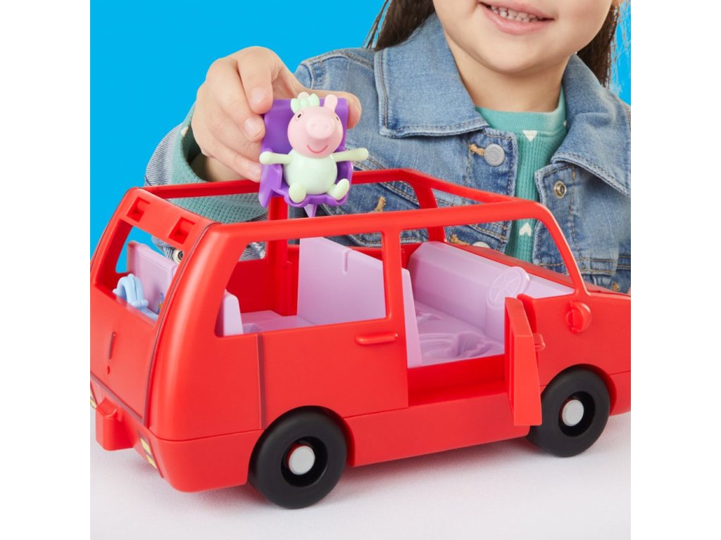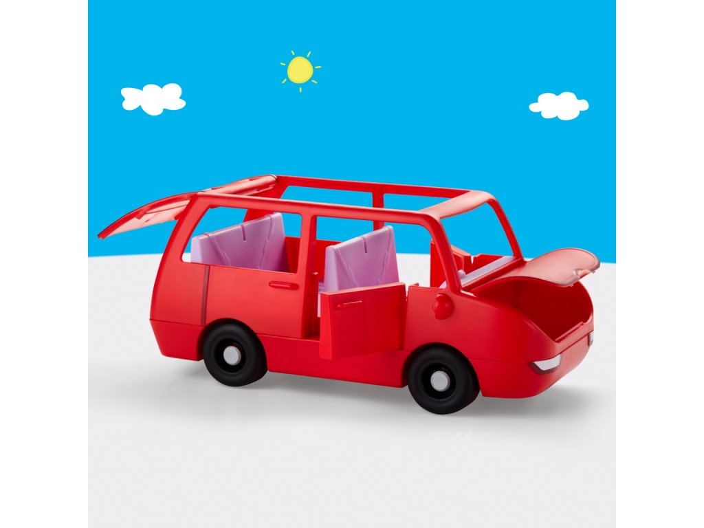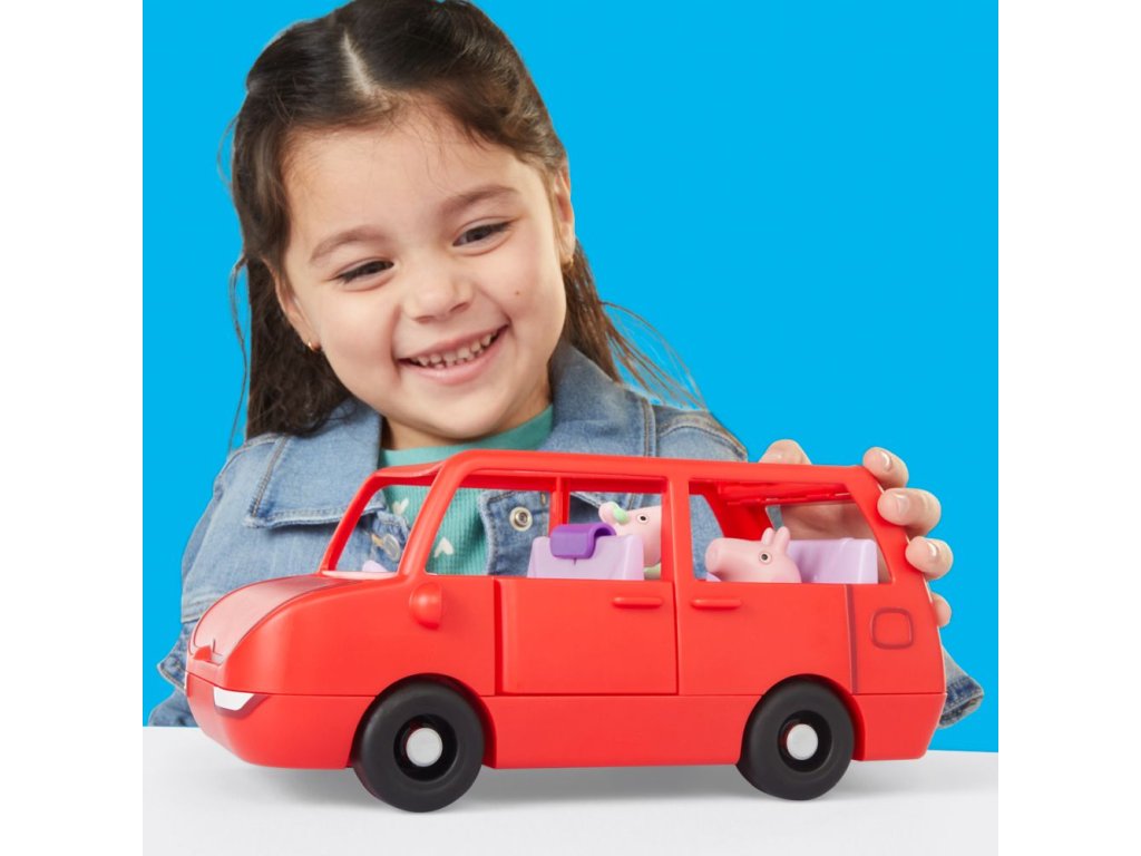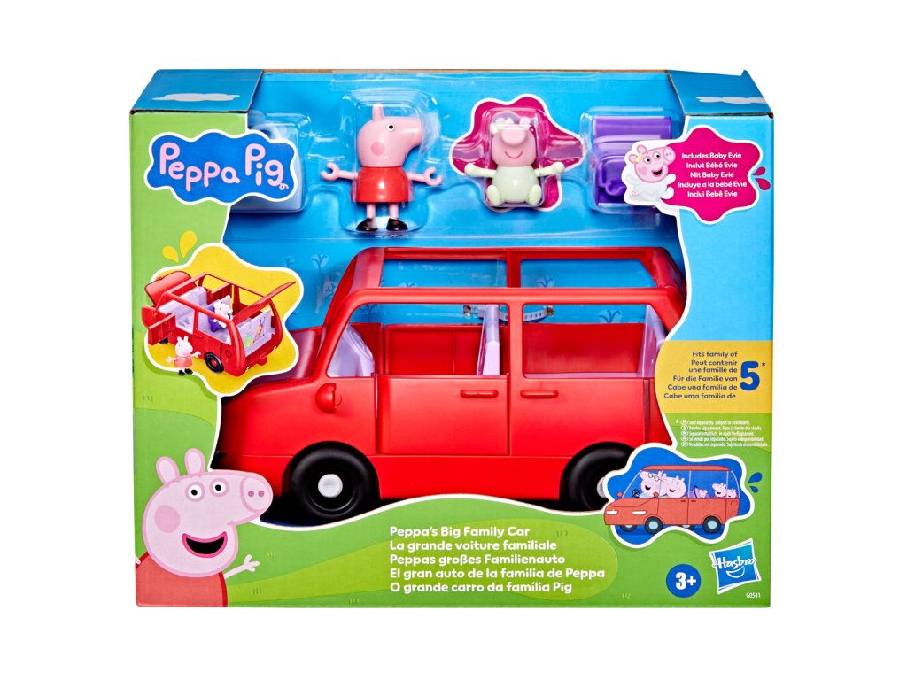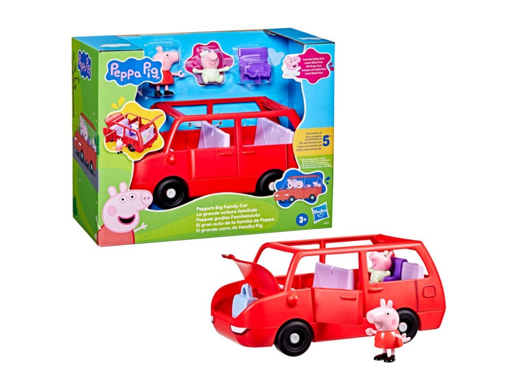Vydejte se na dobrodružství s velkým rodinným autem Peppa Pig. Toto autíčko s prasátkem Peppou obsahuje dvě figurky o velikosti 7,5 cm – Peppu a její rozkošnou sestřičku Evie. Děti mohou otevírat a zavírat kufr, kapotu a dveře a otevřená střecha autíčka usnadňuje umisťování figurek do sedadel. Jste připraveni na výlet? Vložte cestovní kufr do kufru auta a nainstalujte autosedačku pro malou Evie. Do auta se vejde až 5 figurek (prodávají se samostatně), takže je zde místo pro celou rodinu Peppa Pig. Sada obsahuje auto, 2 figurky a 2 doplňky. Hračky Peppa Pig jsou skvělým dárkem pro děti, které milují tento seriál. Rozměry balení: 22,4 x 27,9 x 13,5 cm. Věk: 3+