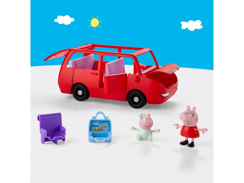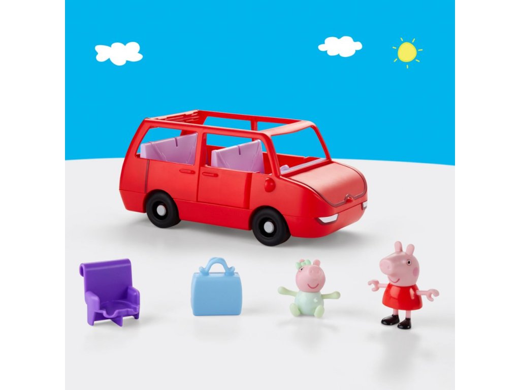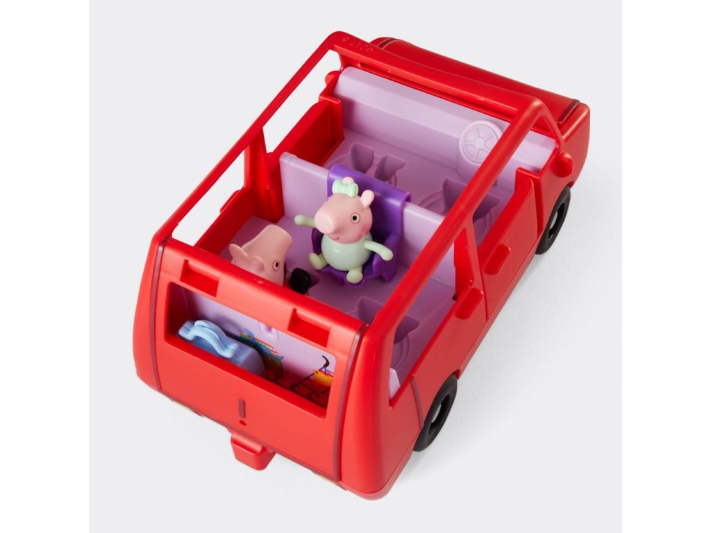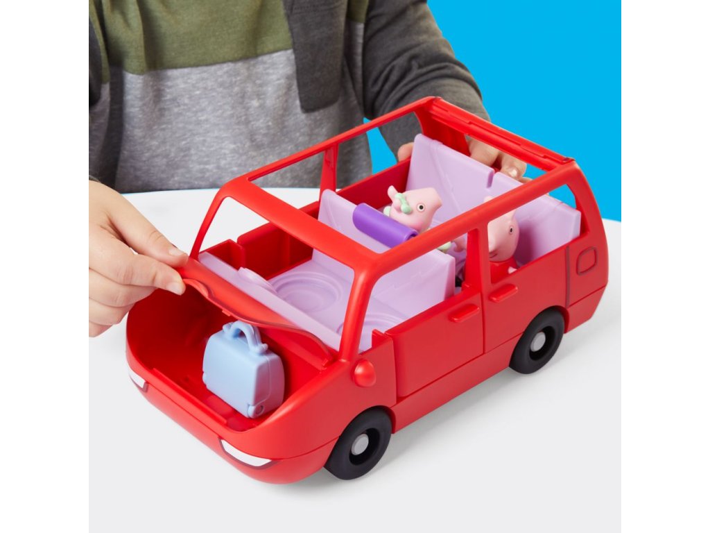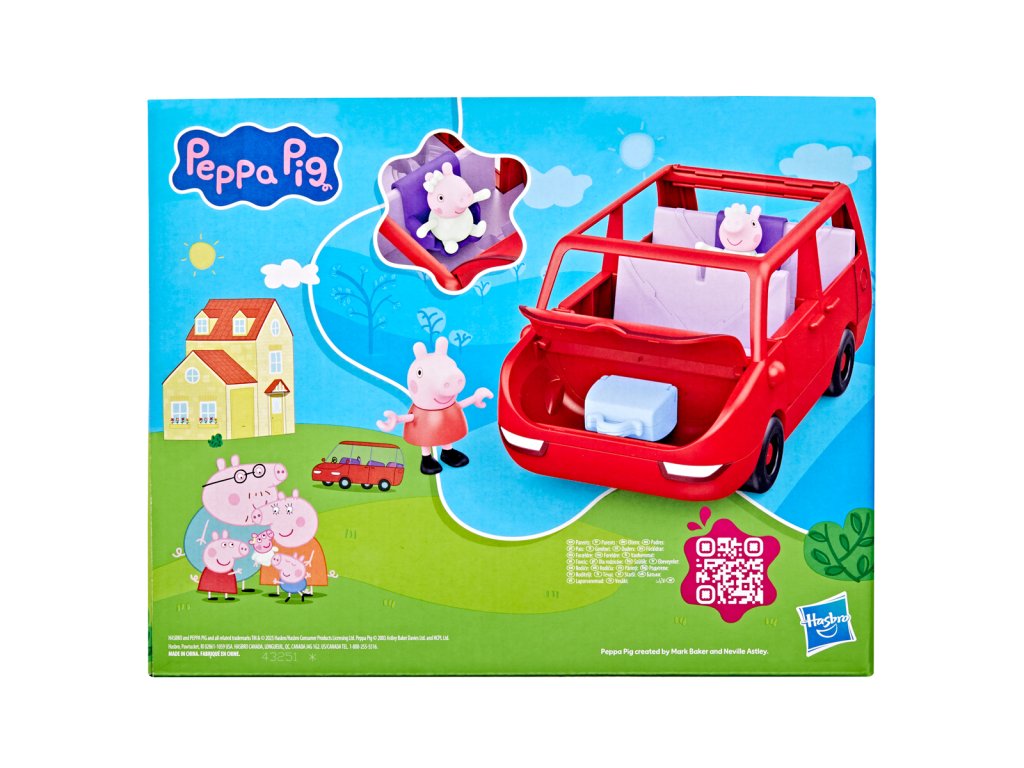 Vydejte se na dobrodružství s velkým rodinným autem Peppa Pig. Toto autíčko s prasátkem Peppou obsahuje dvě figurky o velikosti 7,5 cm – Peppu a její rozkošnou sestřičku Evie. Děti mohou otevírat a zavírat kufr, kapotu a dveře a otevřená střecha autíčka usnadňuje umisťování figurek do sedadel. Jste připraveni na výlet? Vložte cestovní kufr do kufru auta a nainstalujte autosedačku pro malou Evie. Do auta se vejde až 5 figurek (prodávají se samostatně), takže je zde místo pro celou rodinu Peppa Pig. Sada obsahuje auto, 2 figurky a 2 doplňky. Hračky Peppa Pig jsou skvělým dárkem pro děti, které milují tento seriál. Rozměry balení: 22,4 x 27,9 x 13,5 cm. Věk: 3+