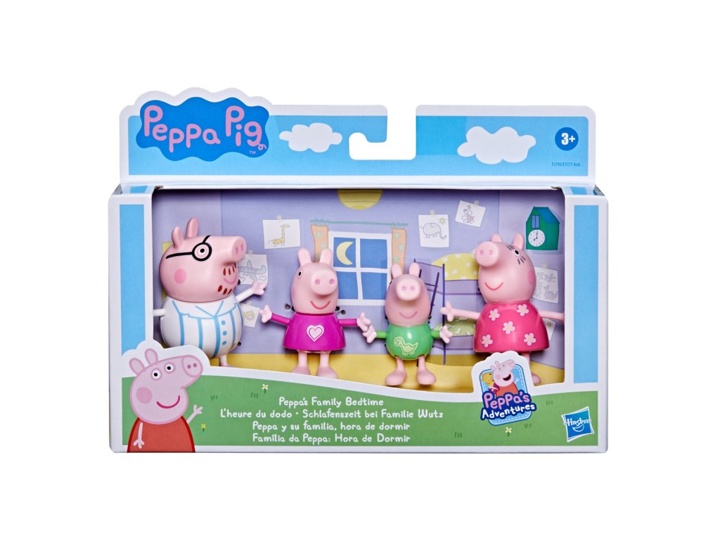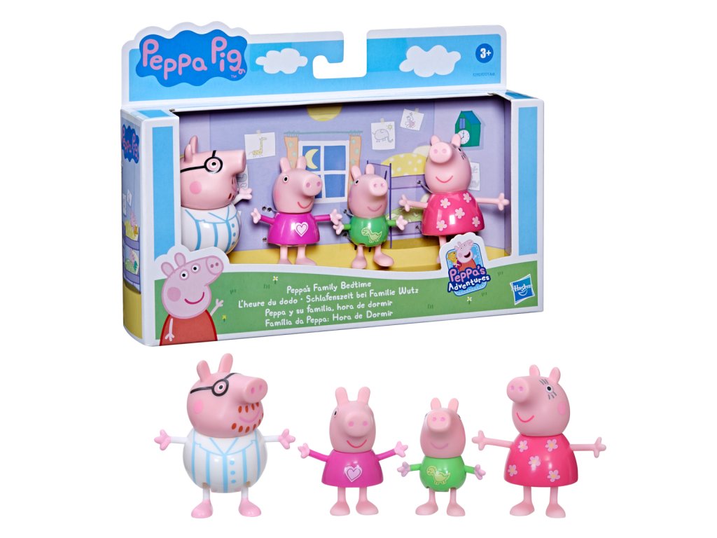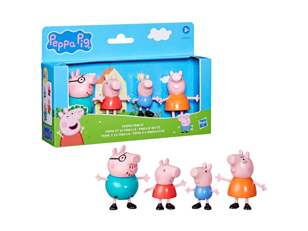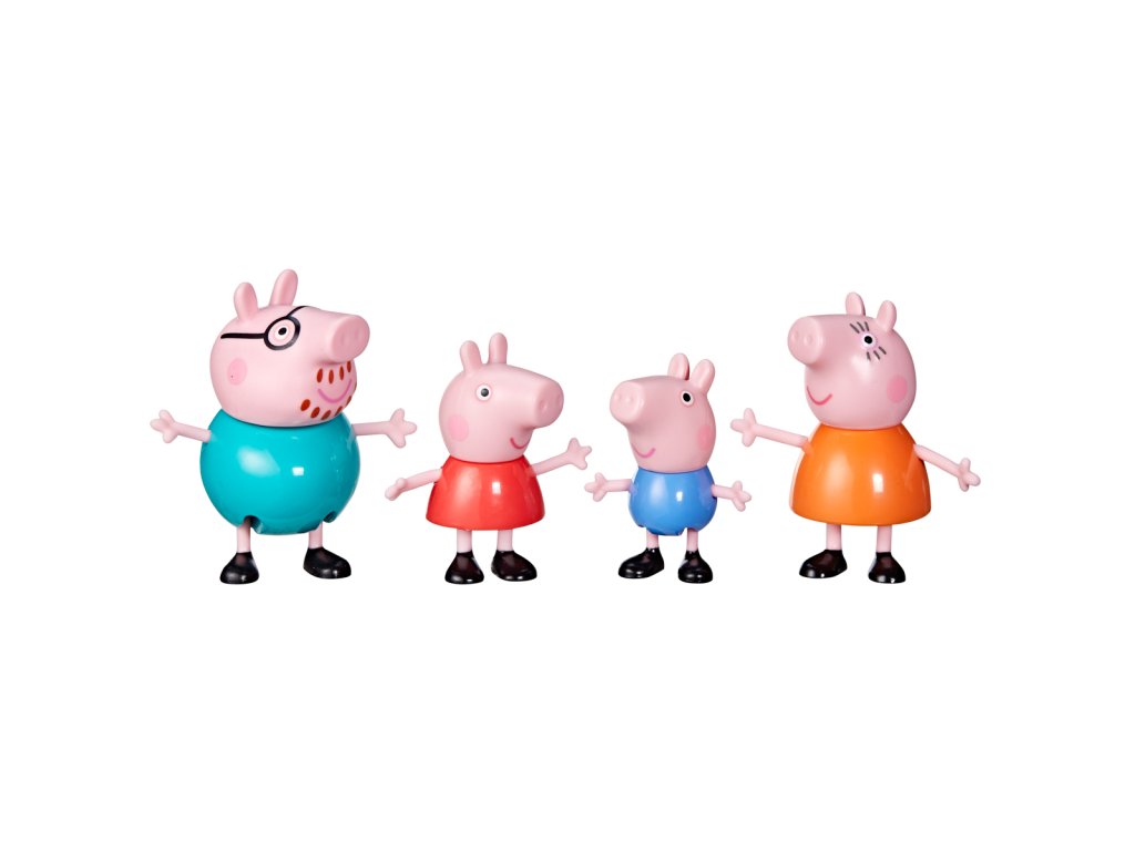 Poznejte rodinu prasátek! Každé balení obsahuje 8cm vysoké figurky maminky, tatínka, Peppy a Toma – to vše i s dekoracemi k obohacení hry. Kolekce 3 témat obsahuje sady - Klasická sada, Deštivý den a Čas jít spát.