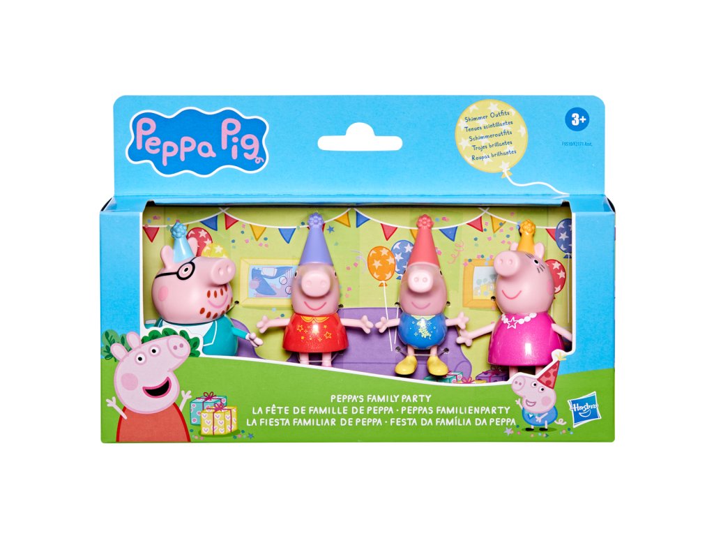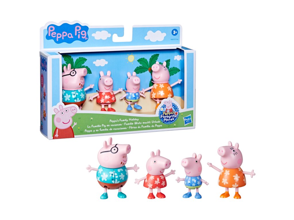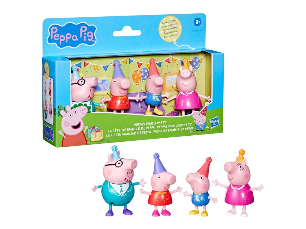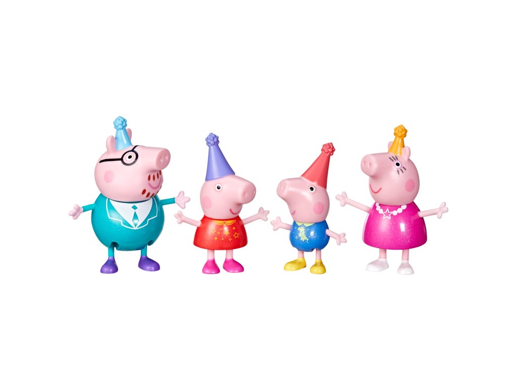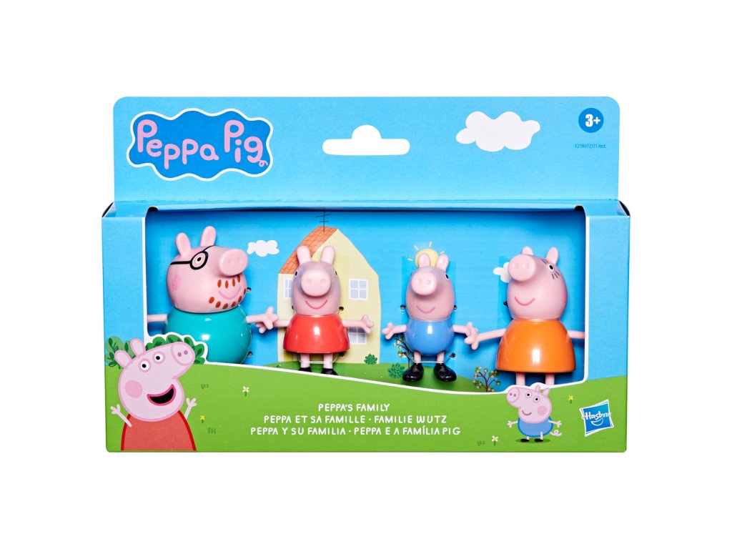 Poznejte rodinu prasátek! Každé balení obsahuje 8cm vysoké figurky maminky, tatínka, Peppy a Toma – to vše i s dekoracemi k obohacení hry. Kolekce 3 témat obsahuje sady - Klasická sada, Deštivý den a Čas jít spát.