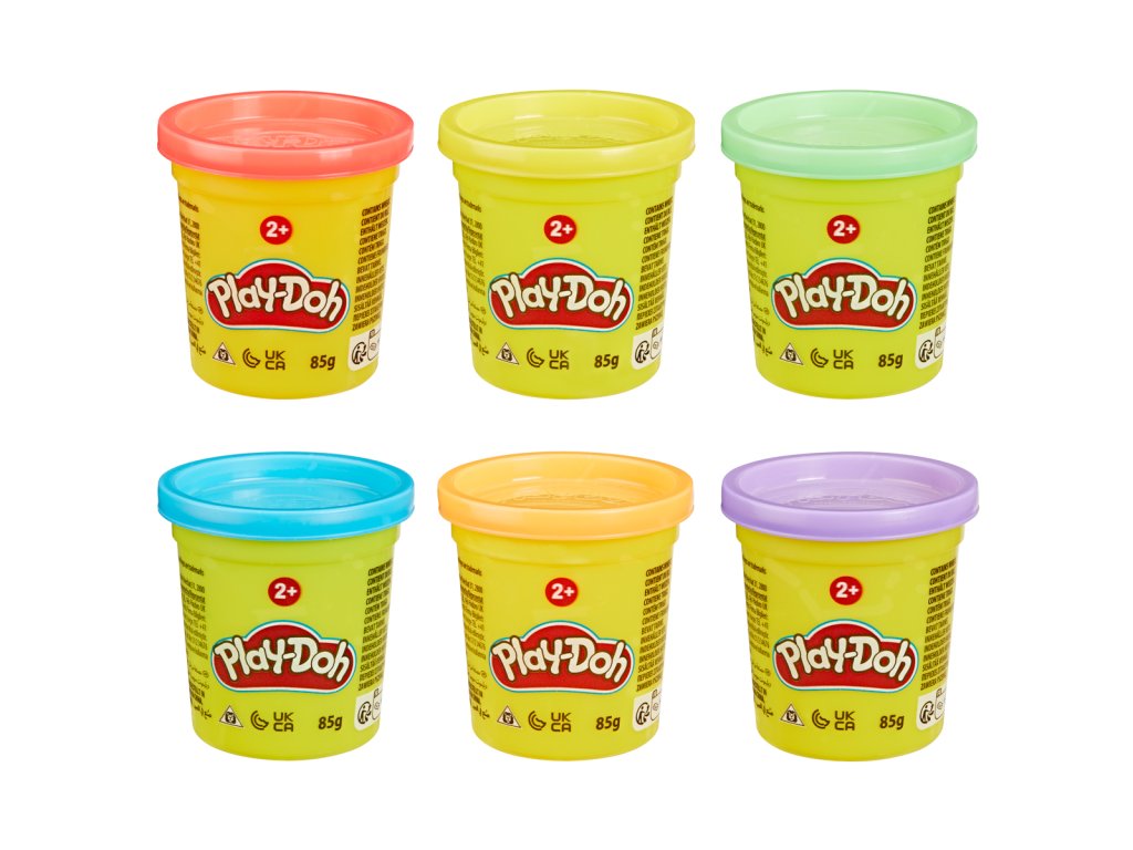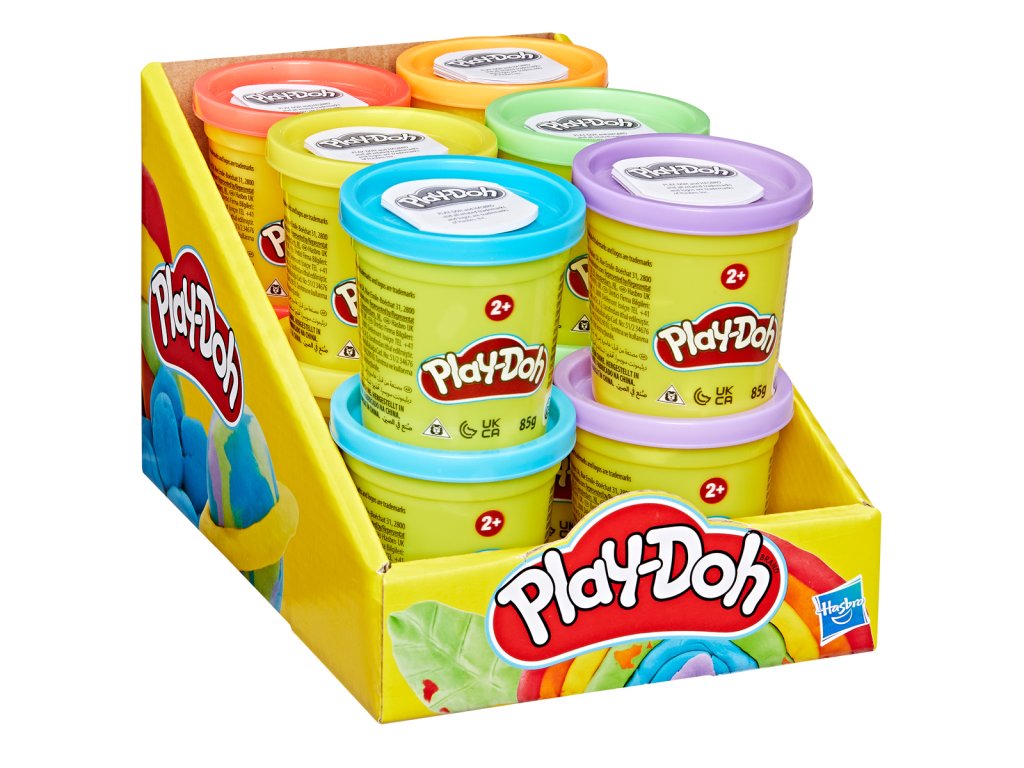 Doplňte svou sbírku Play-Doh jednotlivými kelímky a vytvářejte nejrůznější stavby, podle libosti. Pamatujte, že jediným omezením je vaše představivost. Play-Doh modelovací hmota je perfektní volbou pro kreativní děti, které chtějí vytvářet svoje barevná díla. Assort Play-Doh obsahuje 6 barev. Barvy: červená, oranžová, žlutá, zelená, modrá a fialová. Assort je náhodný mix modelů. Výběr nelze ovlivnit. Jeden kelímek obsahuje 85 g modelovací hmoty Play-Doh. Rozměry balení: 6,7 x 6,35 x 6,4 cm. Věk: 2+