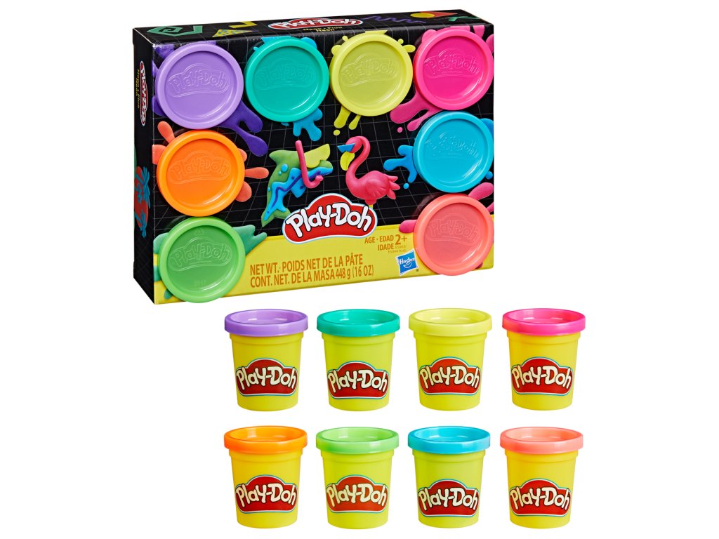 Rozšiřte svou sbírku Play-Doh o 8 dalších kelímků modelíny. Set obsahuje: 8x kelímky s tyrkysovou, růžovou, ostře růžovou, zelenou, světle modrou, oranžovou, fialovou a zelenou modelínou. Náhodný mix zboží. Hmotnost kelímku: 56 g. Hmotnost balení: 448 g. Rozměry balení: 6 x 22 x 16 cm. Věk: 2+