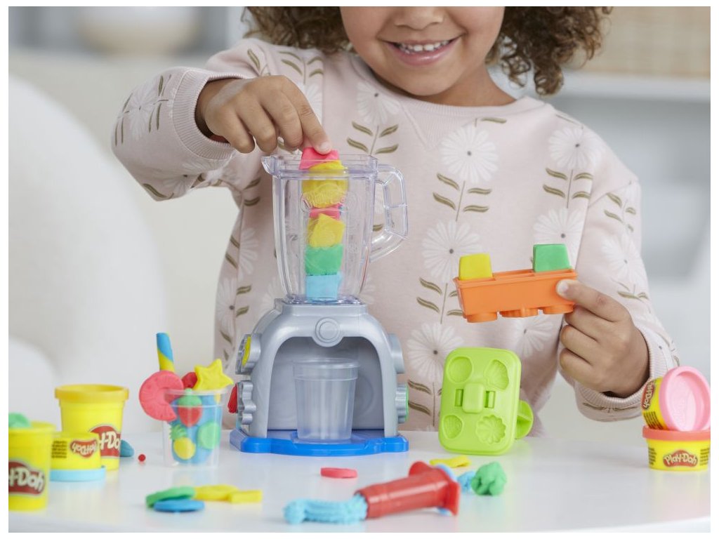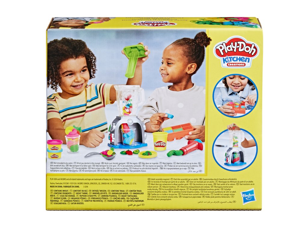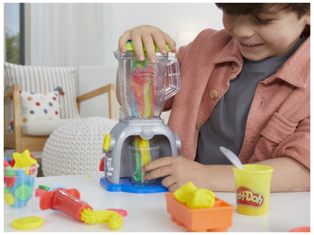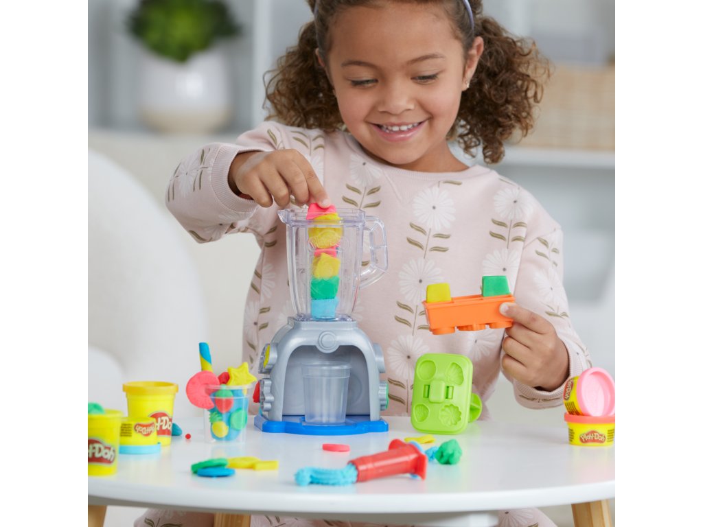 Přichází čas ponořit se do povzbuzující zábavy plné fantazie s sadou Play-Doh Blender na Smoothies! Tento set umožňuje malým milovníkům vaření a přípravy modelovací hmoty hrát si na kuchaře a vytvářet falešné smoothie - stačí vytvořit tvary ovoce a zeleniny z modelovací hmoty pomocí forem a pak je vložit do mixéru, abyste získali vesele vytočené hračkářské nápoje! A když přijde na ozdobení, fantazie nemá mezí! Růžová šlehačka z modelovací hmoty? Proč ne! Žluté jahody k hrám? Samozřejmě! Umělé modré brokolice? Pojďte na to! Fantazie nezná hranic! Tento set je ideální způsob, jak kreativně trávit čas pro děti od 3 let.