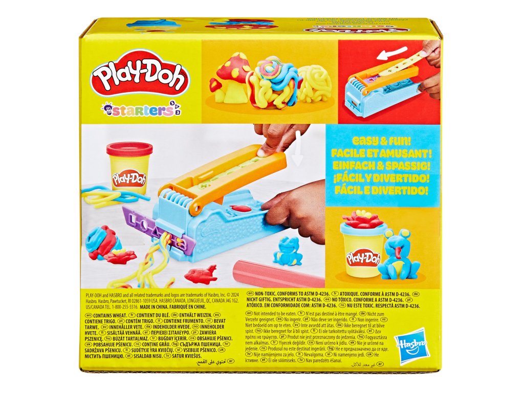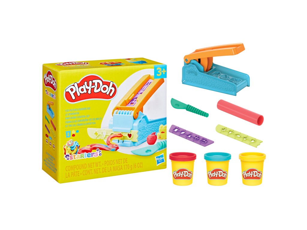 Tak mnoho hravých děl z modelovací hmoty může být vytvořeno pomocí sady Play-Doh Starters Fábrica Zábavy! Tato podnětná hračka podporuje děti v zábavných senzorických aktivitách a je skvělým nápadem pro volnou hru. Díky Fábrice Zábavy si můžete vybrat ze 10 různých tvarů k vytlačování, používat zajímavé formičky a také dráhy se šablonami, které jsou uloženy na vrchní části hračky. Sada obsahuje 3 kelímky s modelovací hmotou Play-Doh v základních barvách (3x56 gramů). Play-Doh Starters Fábrica Zábavy je součástí řady Starters, která nabízí kreativní zábavu pro nejmenší děti již od 3 let.