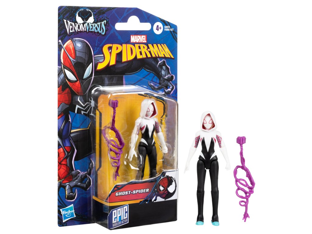 Fanoušci světa Marvel, tuto skvělou 10 cm vysokou figurku Spider-Man Ghost Spider si zamilujete. Díky pečlivým detailům je figurka Ghost Spider z kolekce Venom Versus také skvělým sběratelským kouskem. Skvělý tip na dárek pro fanoušky všech věkových kategorií. Figurka má pohyblivé kloubové končetiny a hlavu. Tato sběratelská akční figurka Marvel Spider-Man Ghost Spider je součástí exkluzivní série Epic World of Action od Hasbro a vyznačuje se charakteristickým černo-bílým designem. Figurky VenomVersus obsahují také specifický Venomized doplněk pro dobrodružství poháněná symbionty. Vyrobeno z kvalitního plastu. Baleno v blistru. Rozměry balení: 20,32 x 12,7 x 3,17 cm. Věk: 4+