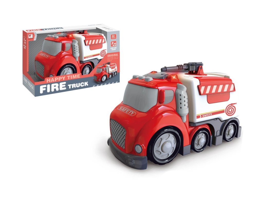 Auto hasič cisterna s efekty. Vydává světelné a zvukové efekty. Baterie 3xAG13, součástí balení. Aktivace tlačítky na střeše (zvuk startování, zvuk troubení, zvuk couvání). Volná kola.