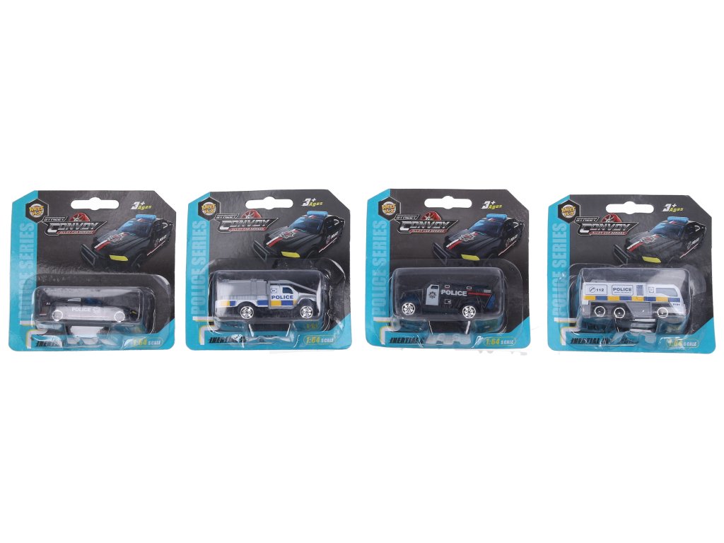 Auto policejní kovové. Velikost 7 cm. Volná kola. 4 varianty.