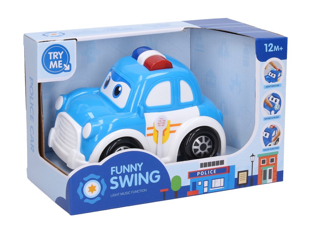 Auto policejní s efekty. Velikost 15cm. Světelné a zvukové efekty. Volná kola. 2xAAA baterie součástí.