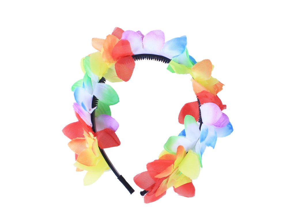 Nepřehlédnutelná čelenka na karneval ve stylu "HAWAII" je parádním doplňkem ke kostýmu. Celá čelenka je zdobená pestrobarevnými okvětními lístky. Senzace!
