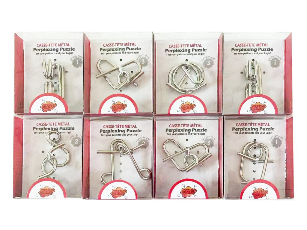 Hlavolam kovový. Přesné rozměry 10,5x8,5x2,5 cm. Display box - 24 ks. více variant