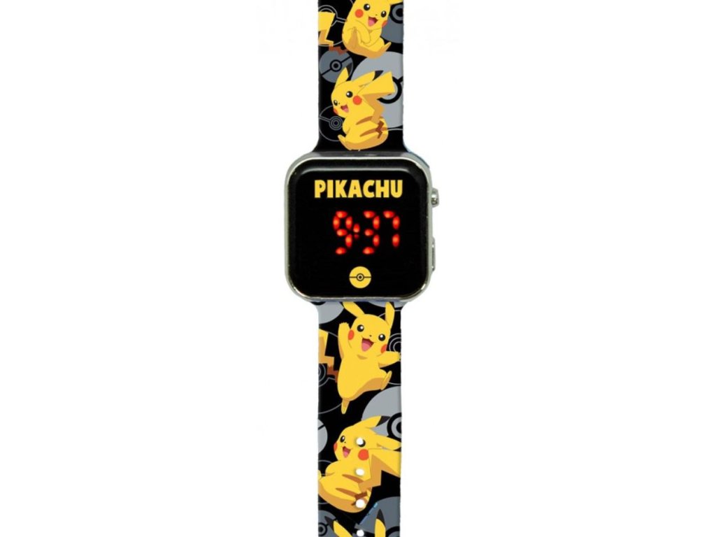 Klasické LED digitální hodinky s ciferníkem a měkkými pásky. Hodinky jsou vyvedené s grafikou hlavního bleskového pokémona jménem Pikachu, a proto jsou perfektní dárek pro lovce Pokémonů všech věkových kategorií, kteří se chtějí vrátit včas domů.