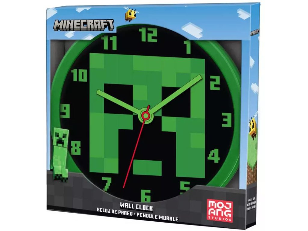 Oficiální produkt - nástěnné hodiny z katalogu zboží s grafikou a licencí populární počítačové hry v otevřeném světě Minecraft.