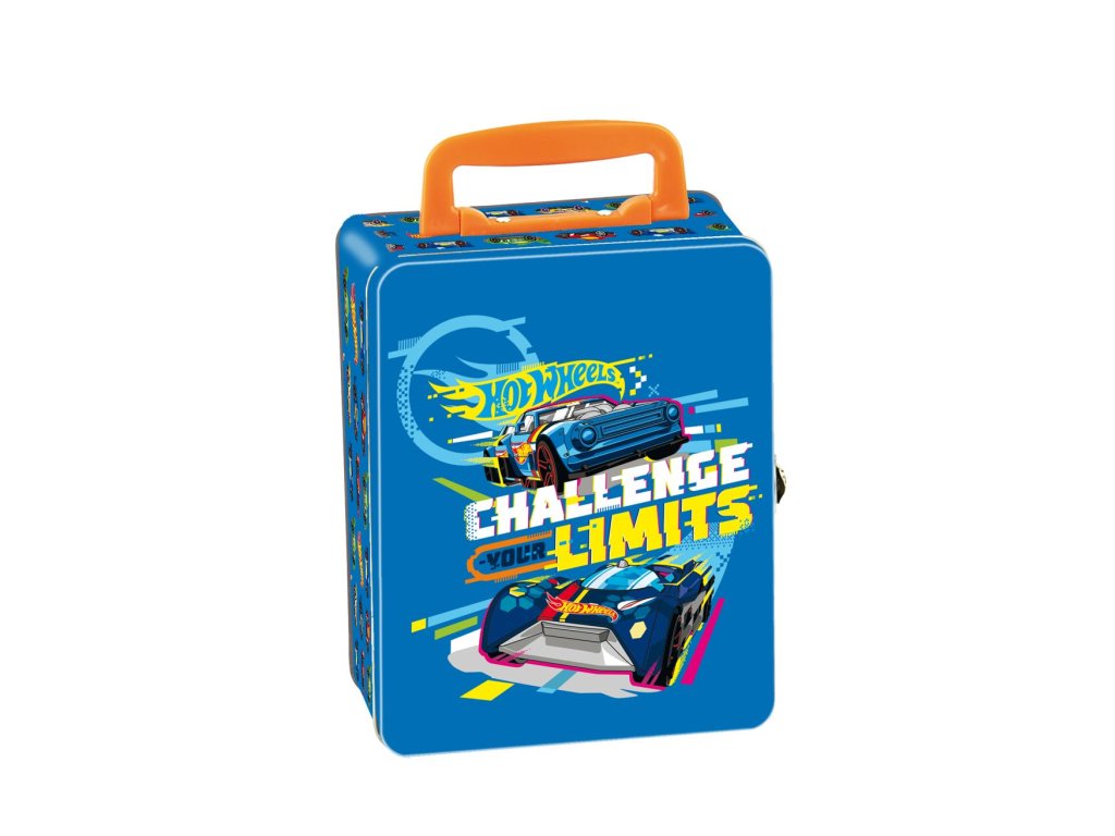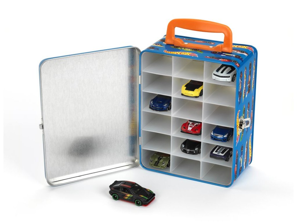 Kufřík na autíčka v licenci Hot Wheels. Do kufříku se vejde až 18 malých autíček. Prodává se bez autíček. Věk 3+