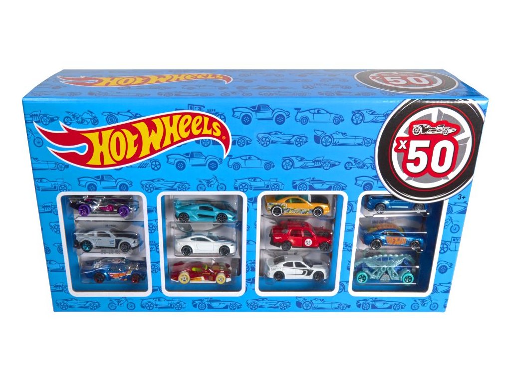 Auta Hot Wheels® jsou skvělou odměnou za dobře odvedenou práci! Každé z 50 vozidel v této základní kolekci automobilů Hot Wheels® je jednotlivě zabaleno a vyznačuje se skvělým dekorem, což z něj dělá dokonalý materiál pro každou příležitost. Pro dárkové tašky, party laskavosti nebo jedno speciální dítě je tento balíček dokonalou startovací sadou a je dodáván se značkovým boxem Hot Wheels® pro snadnou přenosnost. Barvy a dekorace se mohou lišit.
